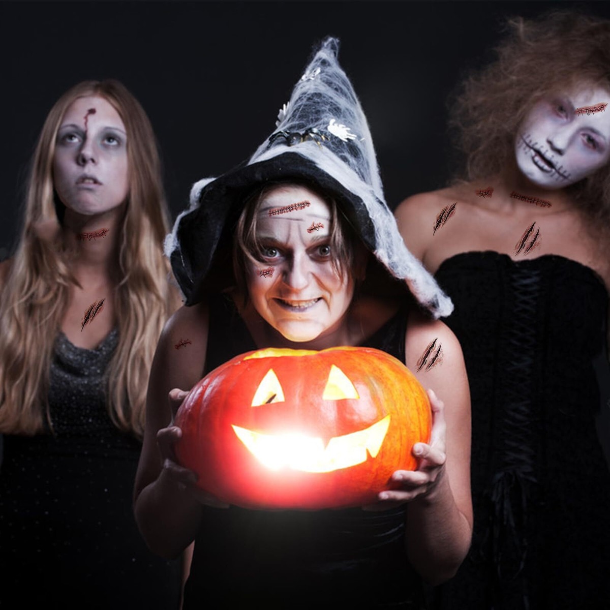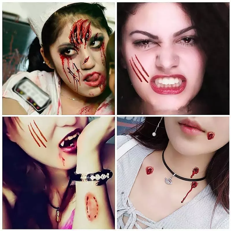 40 Blatt Halloween Tattoos Mit Grusel-Effekten - Zombie Wunden & Vampir Narben Für Partys
