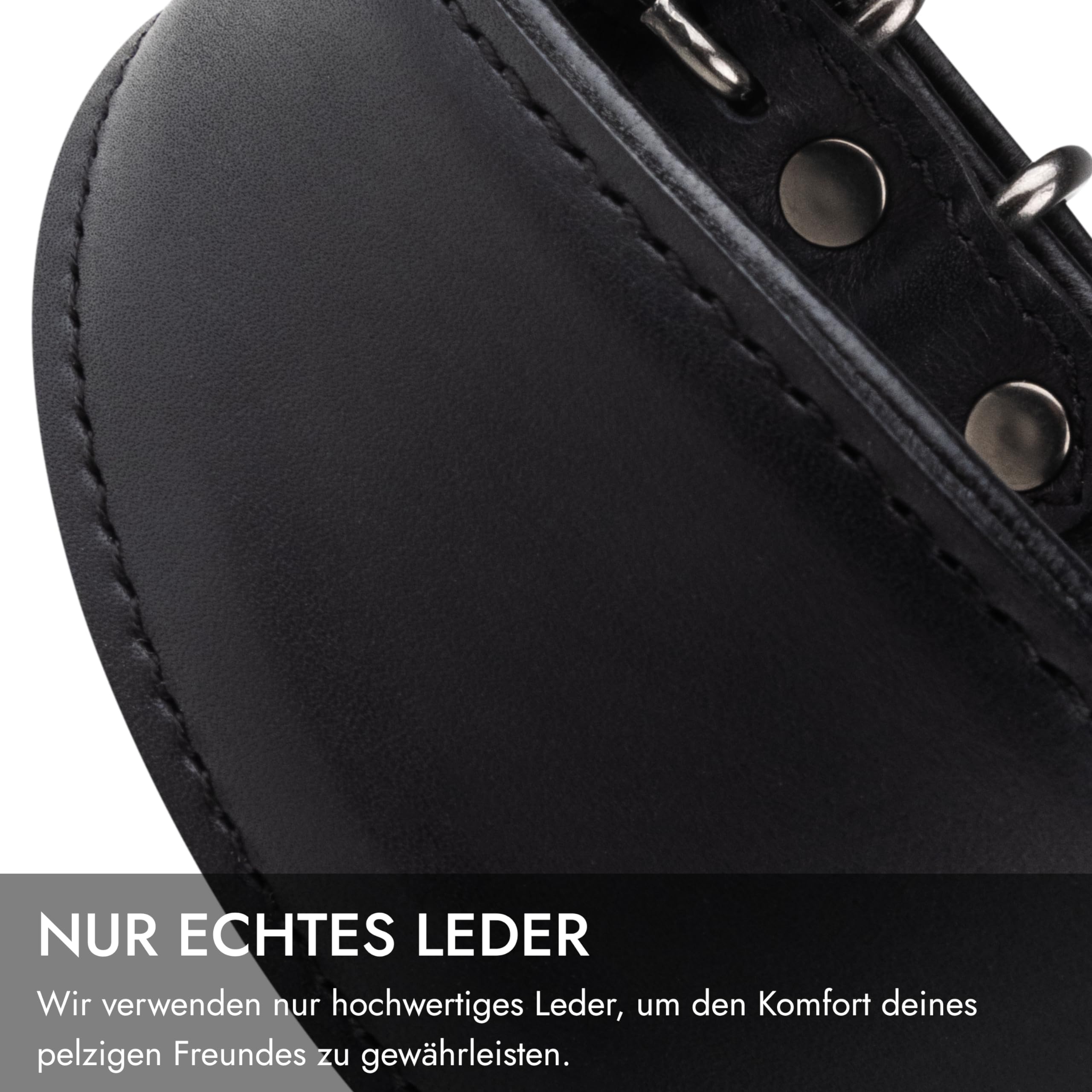 Passend für deinen eleganten Windhund! Dieses spezielle Halsband aus weichem Echtleder wurde extra für Windhunde wie Whippet, Greyhound, Saluki und Co. entwickelt. Warum? Weil diese schlanken Hunde mit ihrem empfindlichen Hals besonderen Schutz brauchen. Das breite Design verteilt den Druck perfekt und verhindert Verletzungen beim Ziehen. Aus hochwertigem Naturleder gefertigt, ist es nicht nur super robust, sondern sieht auch noch klasse aus. Das besondere Feature: Ein QR-Code Anhänger, mit dem du deinen Hund registrieren kannst. Einfach mit der App verlinken, Kontakte hinterlegen und schon bist du auf der sicheren Seite falls mal was passiert. Die stabile Metallschnalle und die verstärkten D-Ringe geben zusätzliche Sicherheit. Erhältlich in 4 Größen von XS bis L - für große, mittlere und kleine Hunde. Einfach messen: Bei großen Hunden sollten zwei Finger zwischen Hals und Halsband passen, bei kleinen reicht ein Finger. So sitzt es perfekt und dein Liebling fühlt sich pudelwohl!