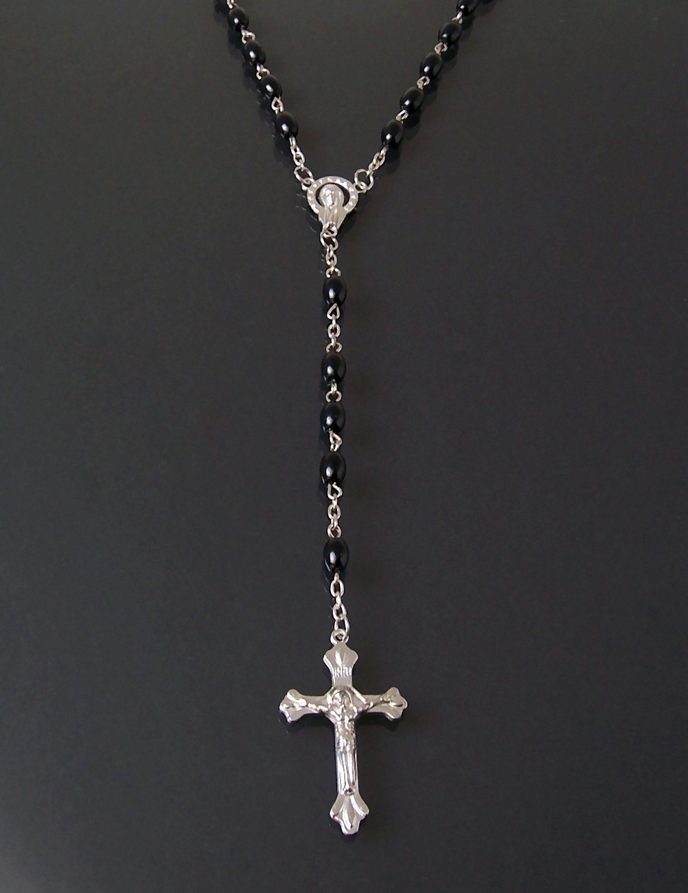 Rosenkranz Halskette 56cm - Hämatit Perlen Mit Kreuz