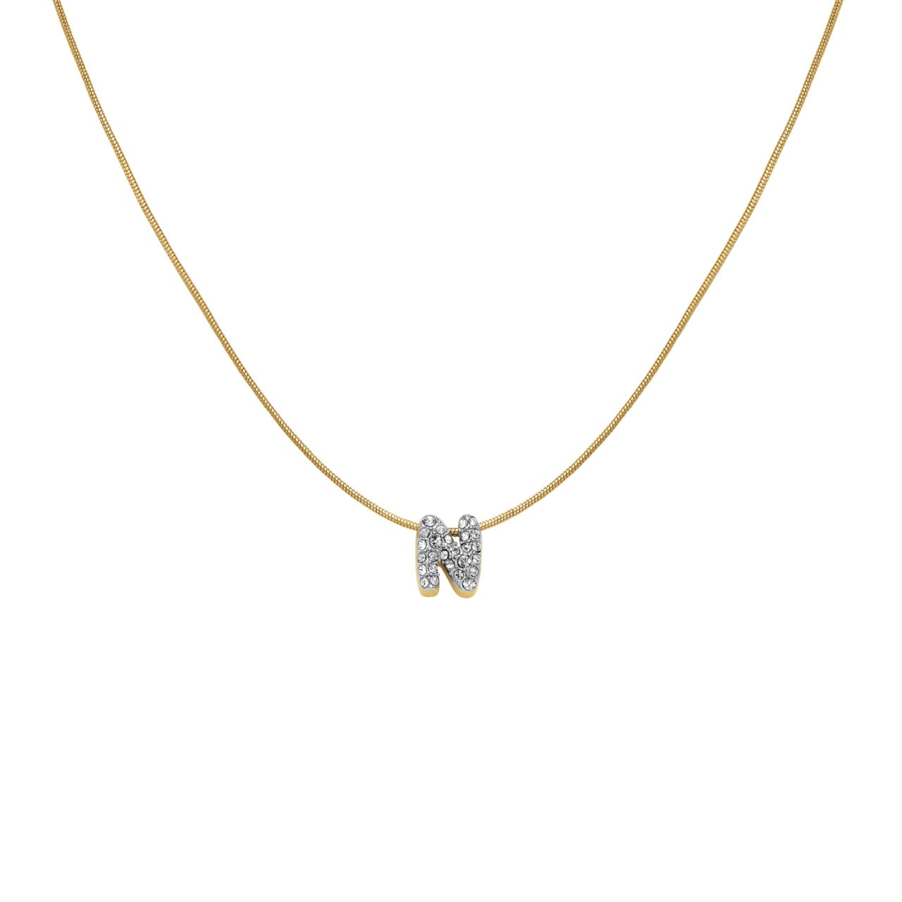 Suchst du eine zarte, aber auffällige Halskette? Die Rosefield Mini Bubble Buchstabenkette in Gold ist ein absoluter Hingucker! Aus hochwertigem Edelstahl gefertigt, ist sie PVD-beschichtet und damit anlaufgeschützt.\\n\\nDie funkelnden Pavé-Steinchen umrahmen den Buchstaben-Anhänger und fangen das Licht wunderschön ein. Perfekt für alle, die es elegant, aber nicht zu auffällig mögen.\\n\\nMit einer verstellbaren Länge von 42-46 cm passt sie sich deinem Hals perfekt an. Der Federverschluss mit zusätzlichem Anhänger sieht nicht nur schick aus, sondern ist auch super praktisch.\\n\\nDie runde Schlangenkette mit 0,9 mm Stärke liegt angenehm auf der Haut. Der Anhänger selbst misst nur 0,85 x 0,8 cm - diskret, aber dennoch präsent.\\n\\nRosefield kommt aus Amsterdam und steht für entspannte Eleganz. Die Marke ist bekannt für qualitativ hochwertigen Schmuck zu fairen Preisen.\\n\\nOb als Geschenk für deine Freundin oder einfach für dich selbst - diese Kette macht immer eine gute Figur und passt zu jedem Outfit!