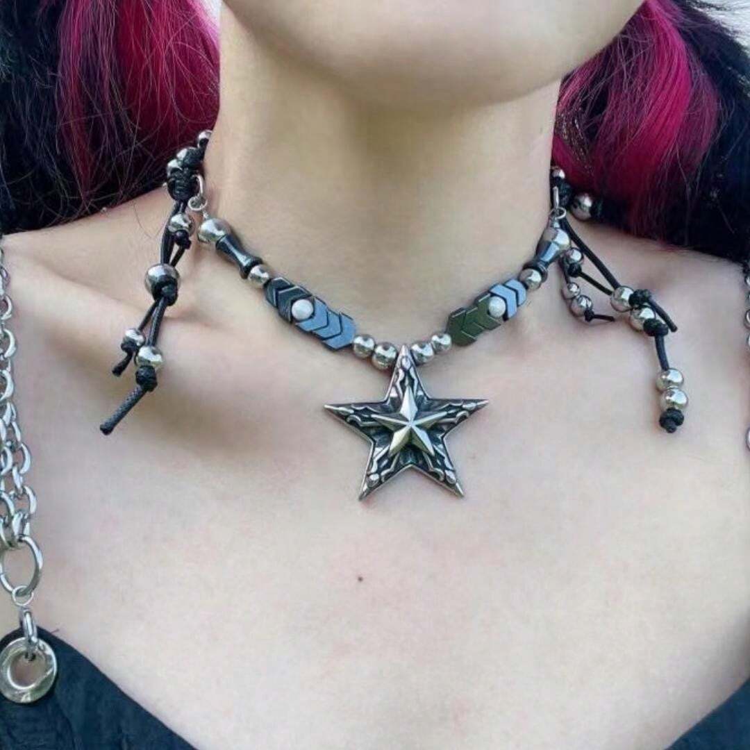 2 Stück Keltische Halsketten - Gothic Punk Schmuck Schwarz & Silber