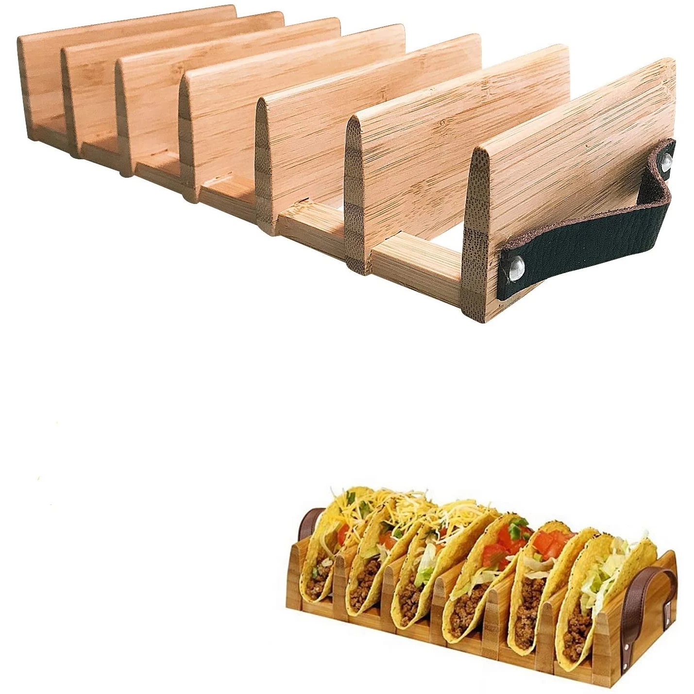 SHENGYIG Taco Halter Set - 2 Holz-Ständer Für Tacos & Hotdogs Mit Praktischen Haltegriffen