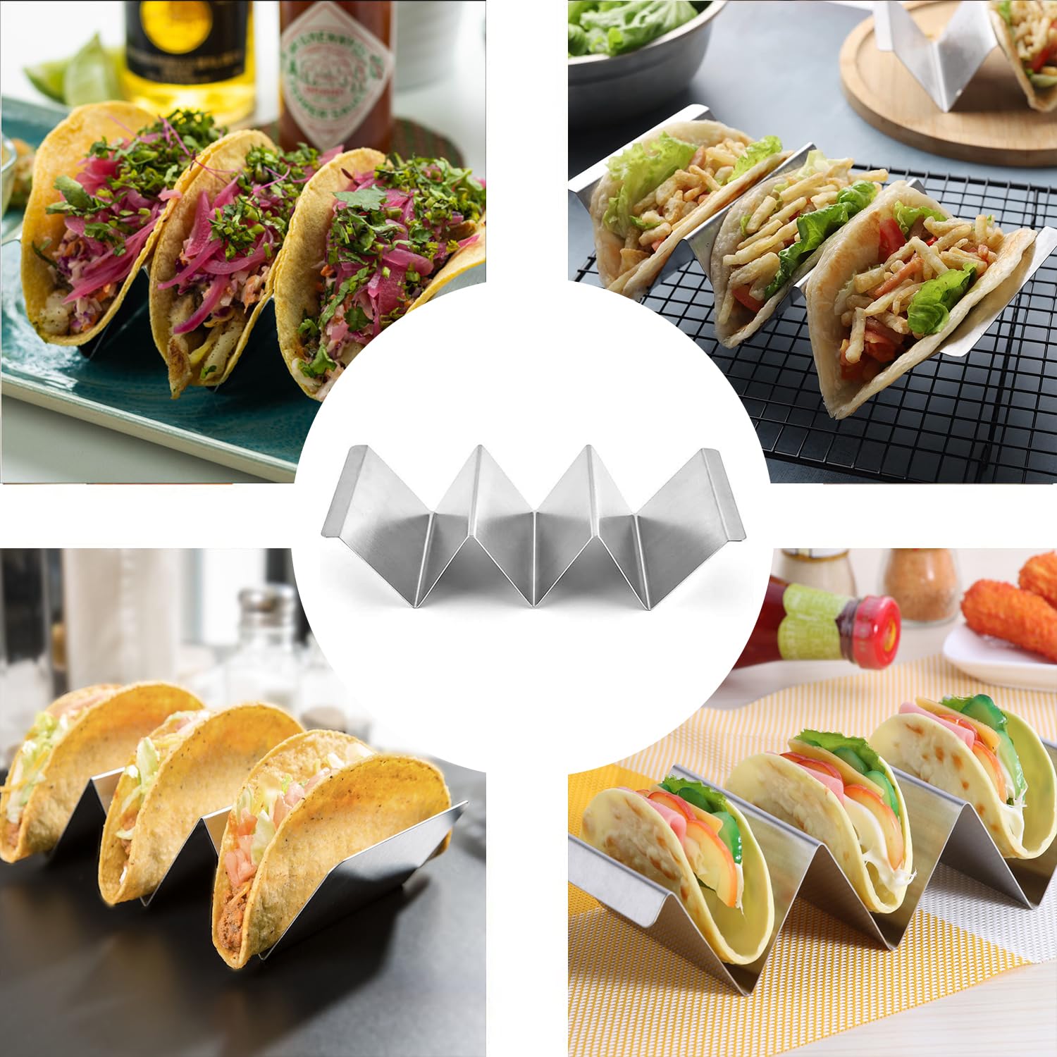 Hey, stell dir vor: Du machst ne Taco-Party und alles steht perfekt! Mit diesen 2 Edelstahl-Haltern klappt's. Die Dinger sind richtig praktisch - halten nicht nur Tacos, sondern auch Hotdogs, Sandwiches und sogar Pfannkuchen. Macht echt was her aufm Tisch!