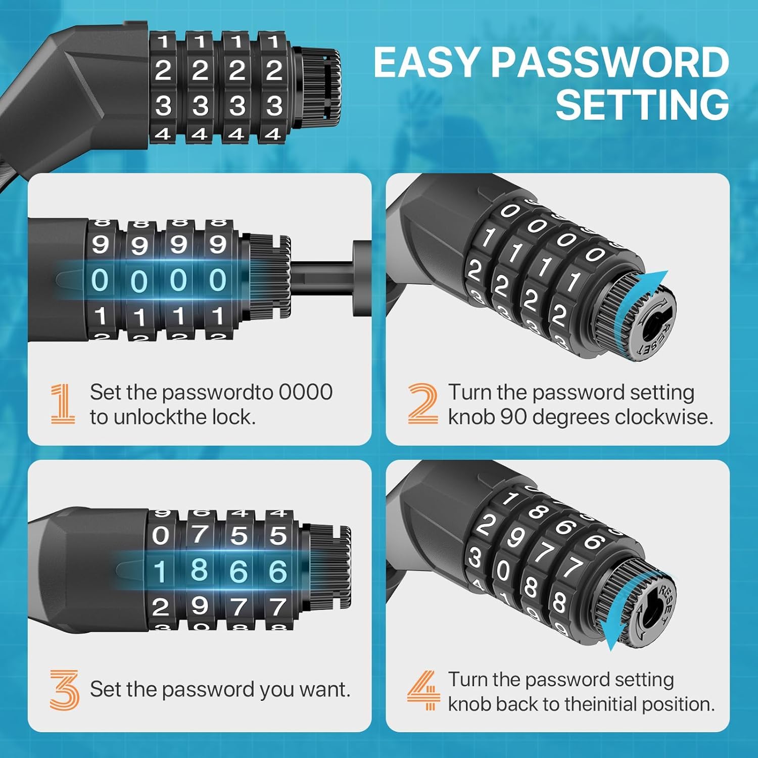 E-Scooter Schloss Mit Halterung - 1,5m Kabelschloss & 4-stellige Kombination