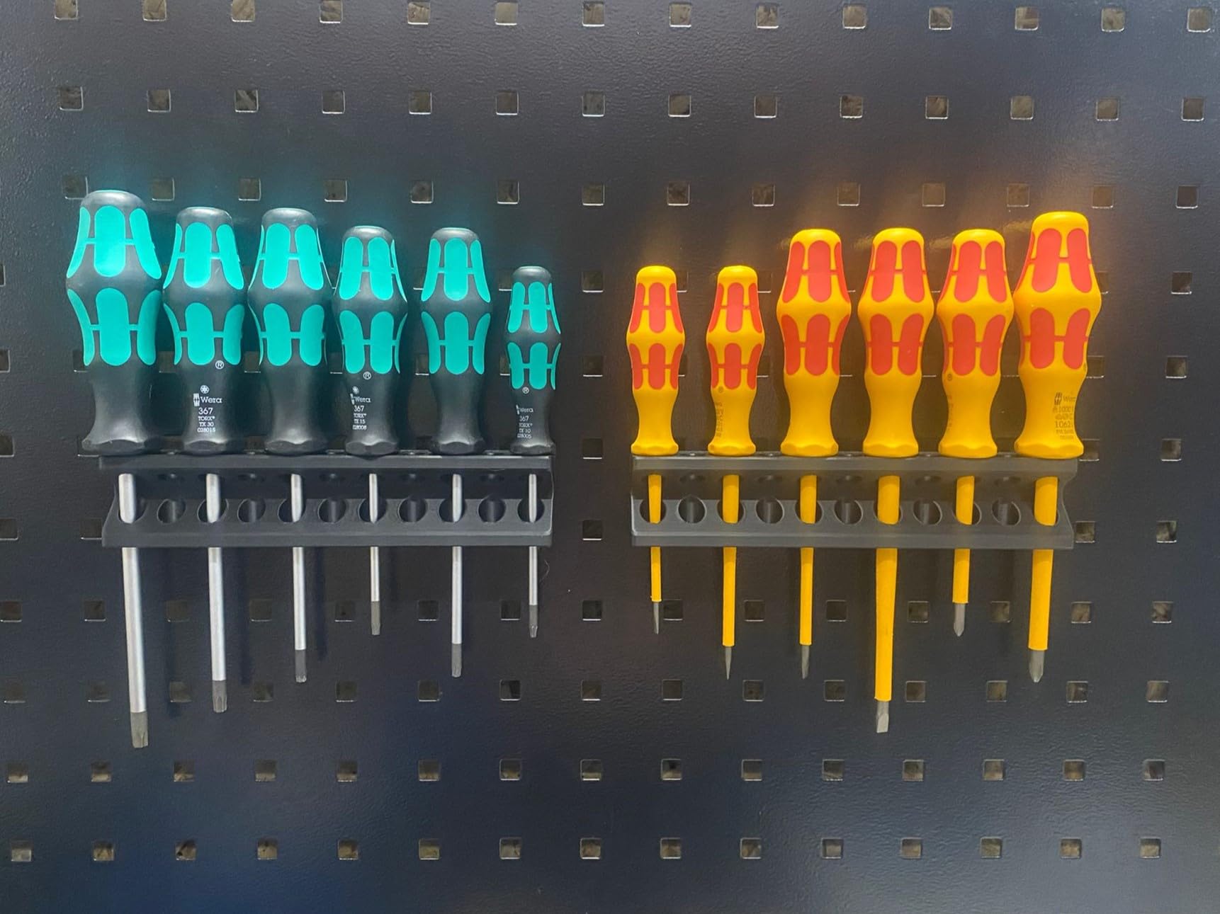 Ordnung im Werkzeugschrank! Diese beiden Halterungen für Sprühdosen passen perfekt auf Lochwände mit 38mm Vierkantlochung. Kompatibel mit Güde, Gedore, ADB und Kraftwerk Systemen. Für Dosen bis 70mm Durchmesser - ideal für WD40 und ähnliche Sprühdosen. Einfache Montage ohne die Lochwand abbauen zu müssen - einfach einhängen und fertig! Hergestellt in Germany für beste Qualität. Endlich haben deine Sprühdosen einen festen Platz und kippen nicht mehr um. Praktisch und platzsparend!