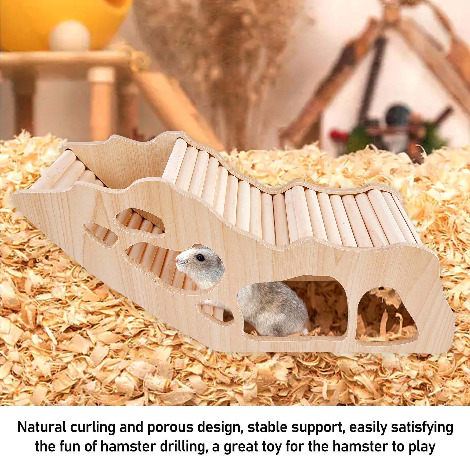 Dein Hamster wird verrückt sein vor Freude! Dieses coole Hamsterhaus aus Holz bietet alles, was ein kleiner Nager zum Glücklichsein braucht: Versteckmöglichkeiten, Kletterbereiche und spannende Tunnel zum Erkunden.