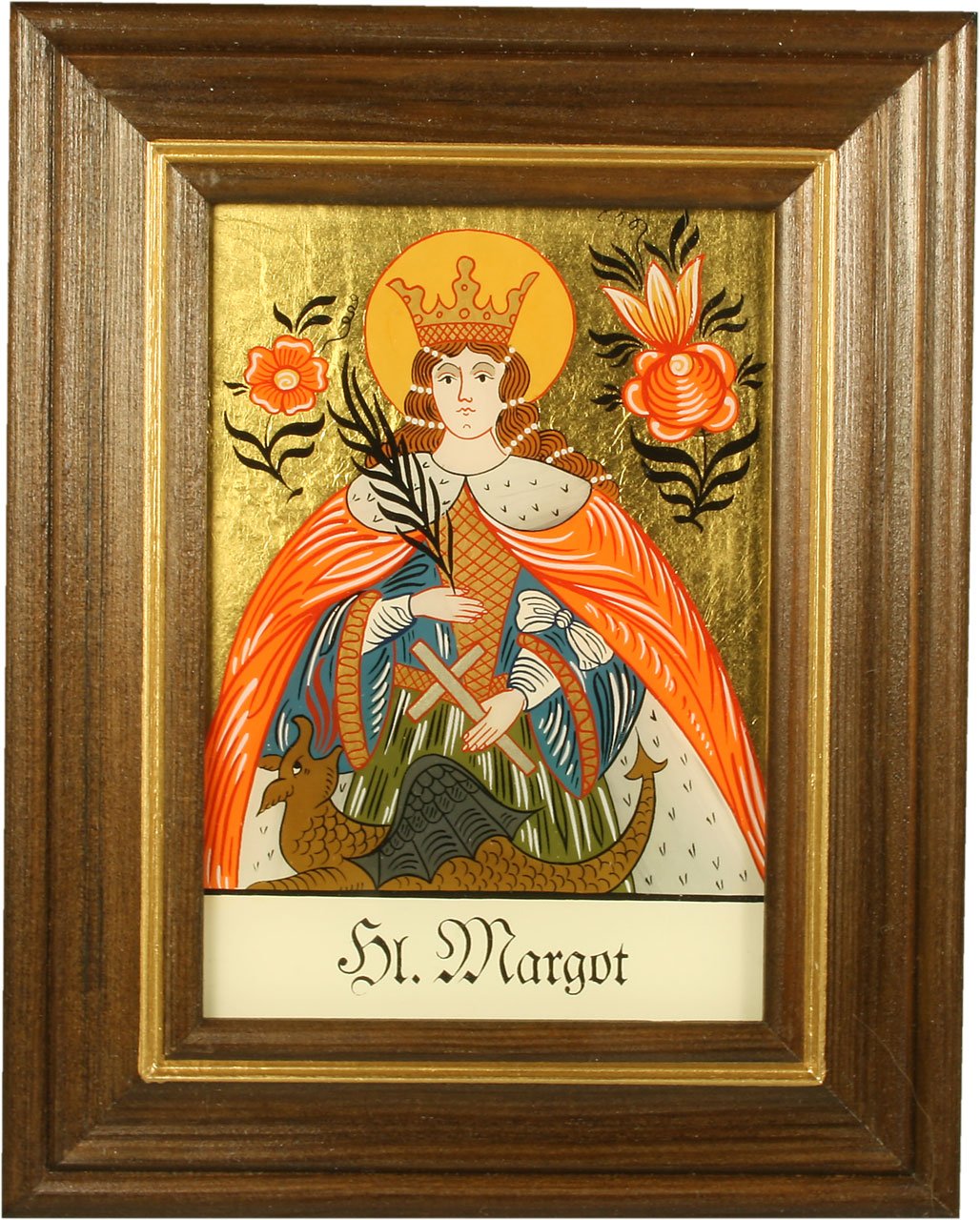 Dieses Hinterglasbild vom Hl. Robin ist ein richtig schönes, traditionelles Kunstwerk! Liebevoll von Hand bemalt, mit einem Hintergrund aus echtem 24 Karat Blattgold - das gibt dem Bild eine ganz besondere Tiefe und Leuchtkraft. Der hochwertige, braun gebeizte Holzrahmen rundet das Gesamtbild perfekt ab. Mit den Maßen von etwa 12,5x16cm ist es kompakt aber ausdrucksstark. Das Typische an Hinterglasmalerei: Man malt vom Vordergrund zum Hintergrund, was den Bildern eine besondere Lebendigkeit verleiht. Durch die uneinheitliche Glasstruktur erscheint das Bild je nach Betrachtungswinkel immer etwas anders - einfach faszinierend! Auf der Rückseite findest du eine Beschreibung der Legende des Hl. Robin. Perfekt als persönliches Geschenk für Geburts- und Namenstage, Taufen, Kommunion, Firmung, Hochzeiten oder andere besondere Anlässe. Da das Bild hinter Glas ist, kannst du es einfach von Schmutz und Staub befreien. Ein zeitloses Stück traditioneller Handwerkskunst, das in keiner Sammlung fehlen sollte. Einfach aufhängen und sich an diesem besonderen Kunstwerk erfreuen!