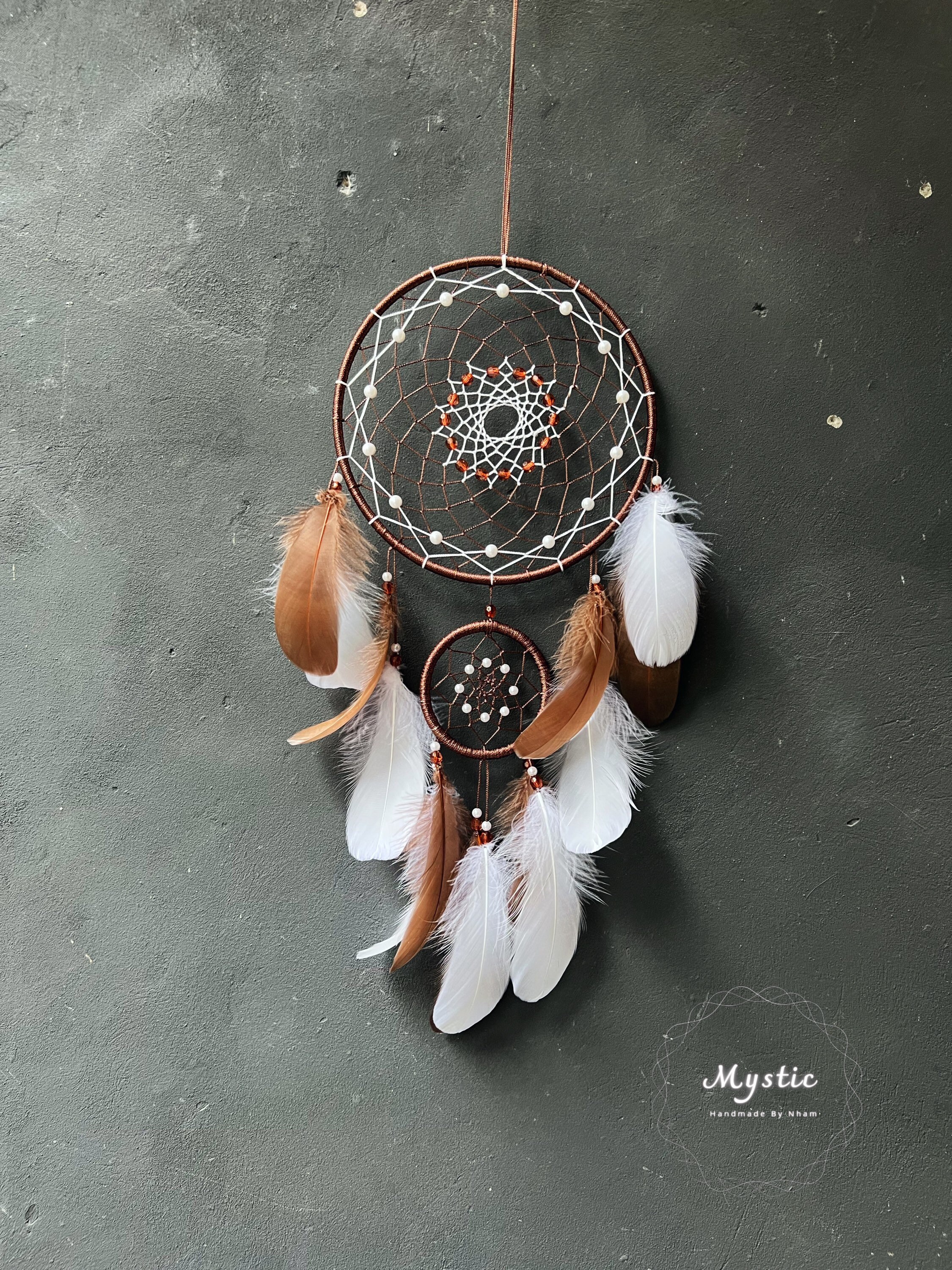 Träumst du oft unruhig? Dieser handgefertigte Traumfänger soll helfen! Er fängt die schlechten Träume ein und lässt nur die Guten durch. Hergestellt aus einem Eisenring, Baumwollfaden, Kunststoffperlen und echten Federquasten in zartem Rosa. Der Traumfänger ist etwa 58 cm lang, der Ring hat 16 cm Durchmesser. Super als Deko fürs Schlafzimmer, Wohnzimmer, Büro oder sogar im Auto. Auch ein tolles Geschenk für Menschen, die oft Albträume haben - oder einfach für alle, die den boho-stil lieben! Achtung: Der Haken könnte sich lösen, also außer Reichweite von Kindern und Haustieren aufhängen. Mit diesem Traumfänger bringst du nicht nur Stil in dein Zuhause, sondern auch eine Portion Magie und guten Schlaf.