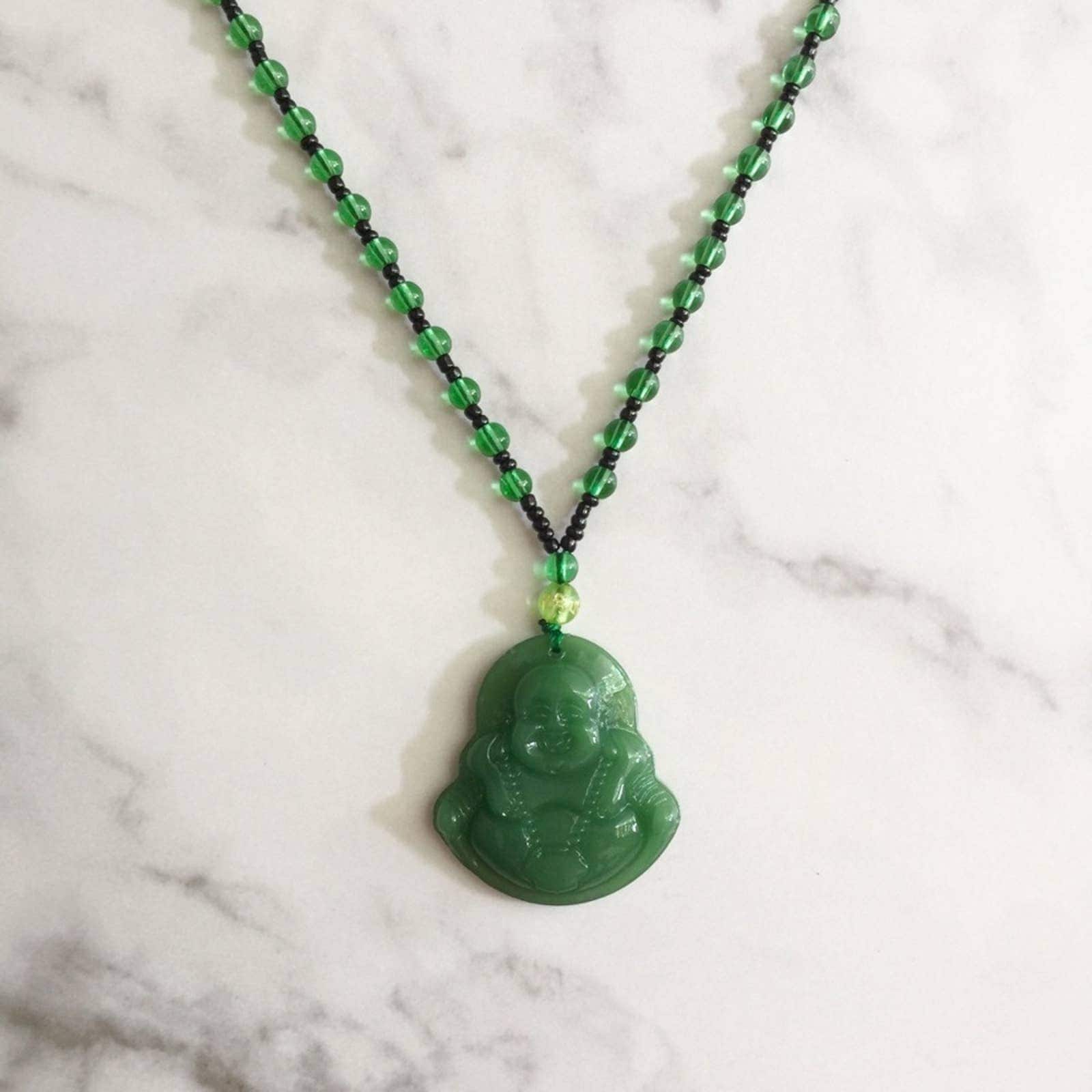Buddha Anhänger Halskette - Handgefertigte Kristall Perlenkette, Yoga Schmuck, 32-34 Zoll