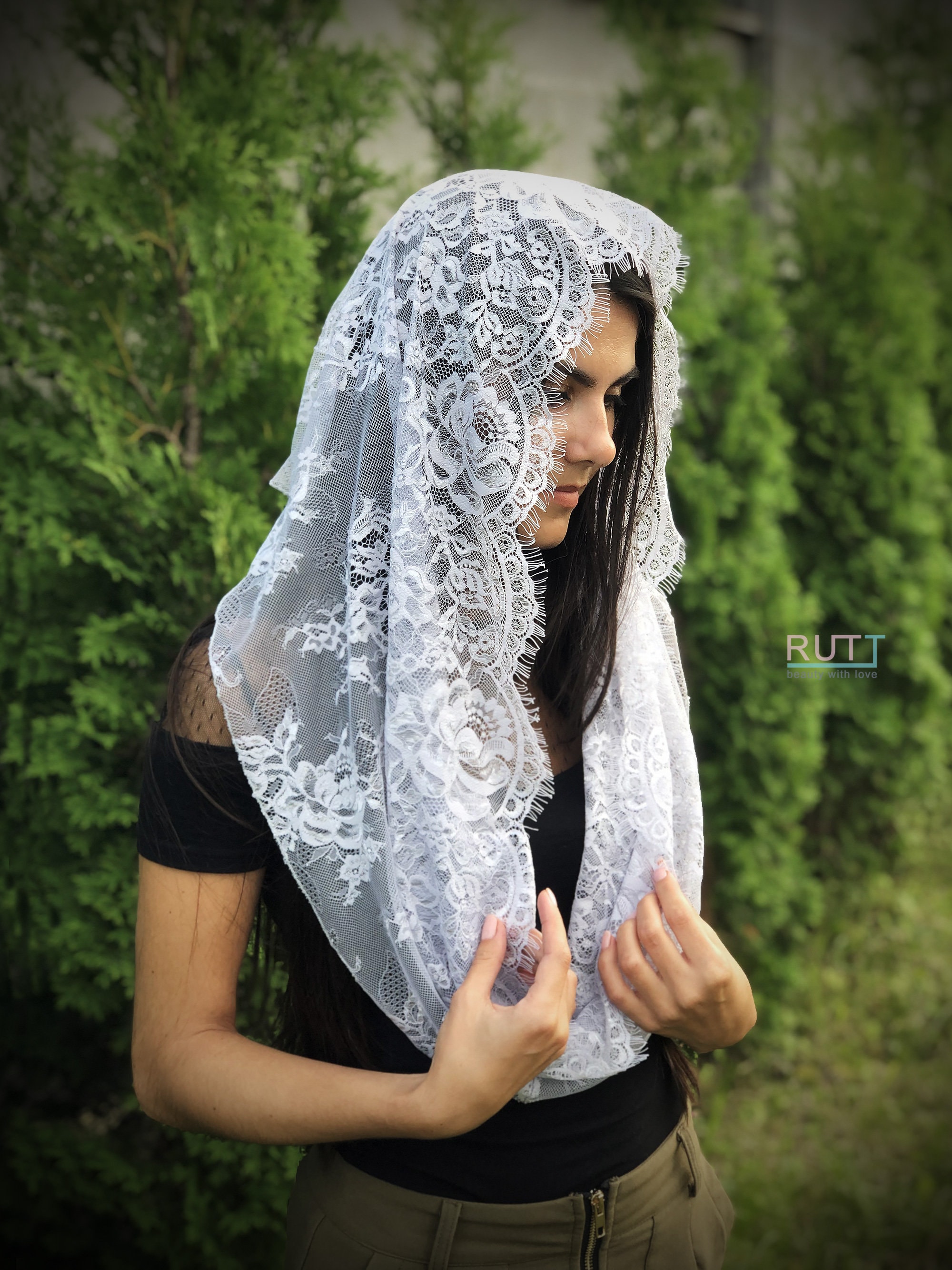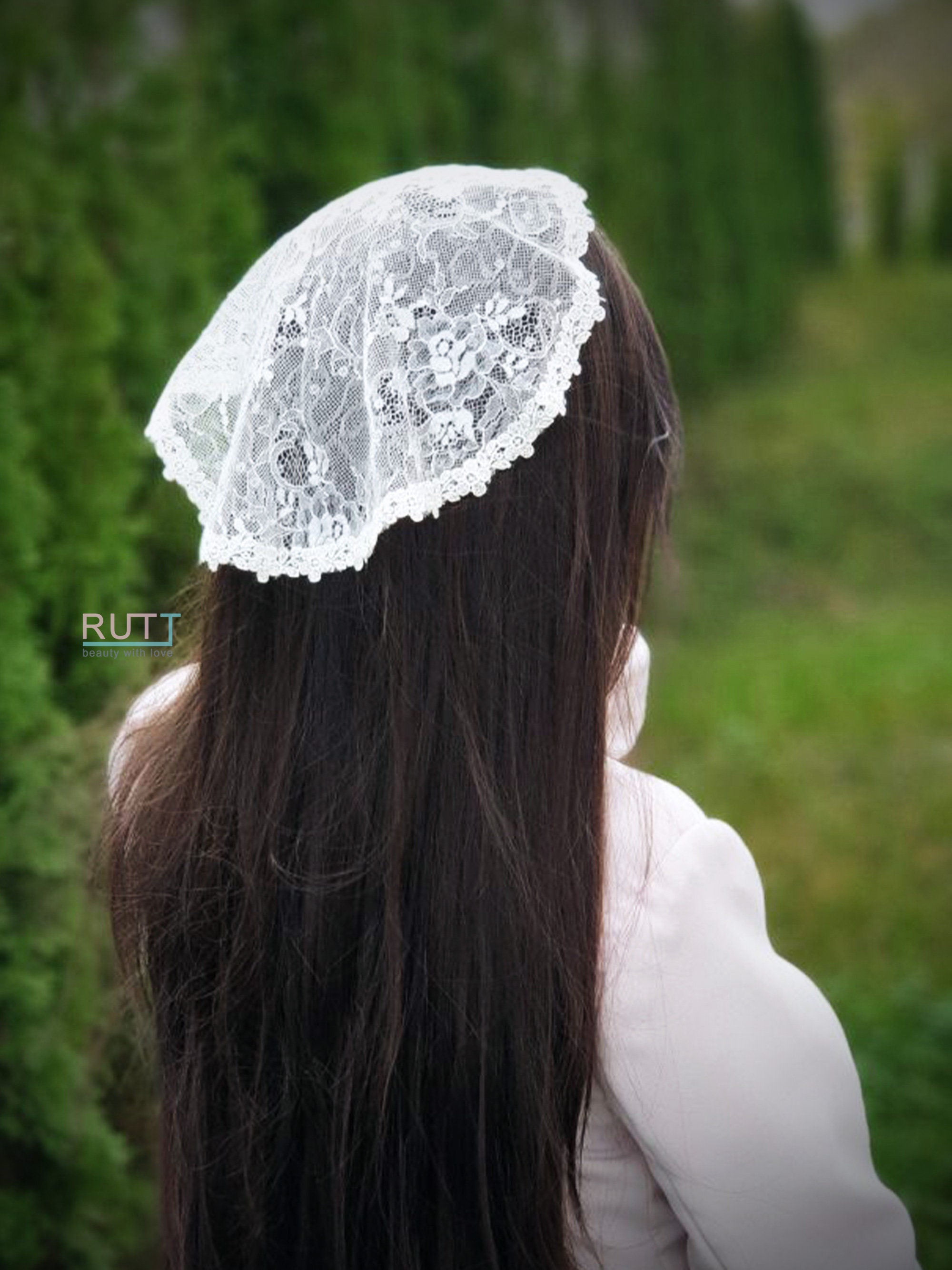 FANFAN Chapel Schleier Mantilla - Handgefertigte Spitze Kopfbedeckung Für Kirche & Hochzeit