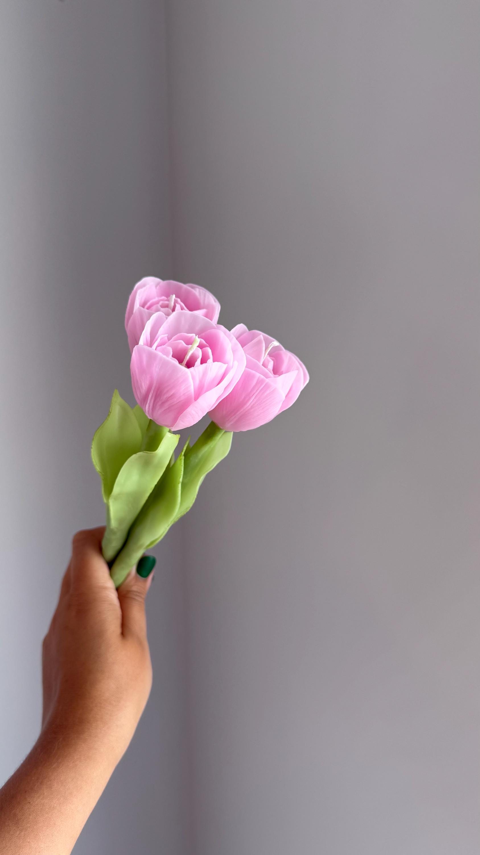 Bienenwachskerze Tulpen Strauß - Handgemacht 10cm Aus Reinem Bienenwachs