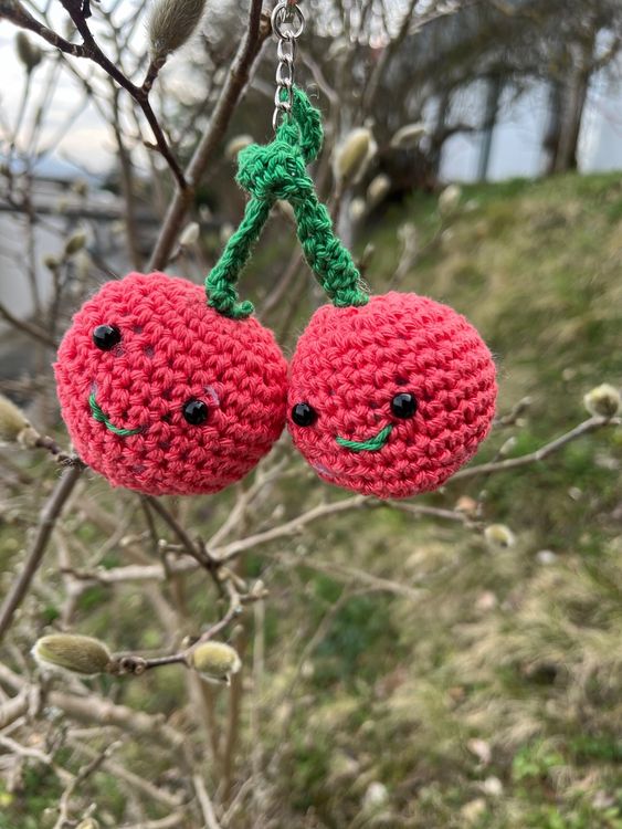 Gehäkelte Kirschen Schlüsselanhänger - Handgemachte Woll Accessoires Für Schlüssel & Taschen
