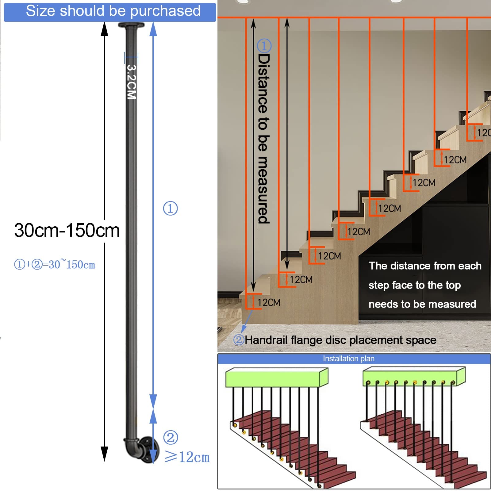 Sicherheit und Stil für deine Treppe! Dieser L-förmige Handlauf aus Schmiedeeisen gibt Halt und sieht dabei super edel aus. Mit 150cm Länge (andere Größen verfügbar) passt er für die meisten Treppen.\n\nDas verdickte Eisenrohr ist extrem stabil und trägt problemlos das Gewicht. Der umweltfreundliche Lack ist wasserfest und kratzresistent - hält lange schön.\n\nEinfache Montage an Beton-, Ziegel- oder Holzwänden. Alles nötige Zubehör liegt bei. Perfekt für Dachbodenzugänge, Villentreppen oder wherever du extra Halt brauchst.\n\nTipp: Misst die Höhe von der Stufe bis zur gewünschten Oberkante und addiert 12cm für den Chassis-Abstand. So bekommst du die perfekte Länge. Sieht nicht nur gut aus, sondern gibt auch sicheres Gefühl!