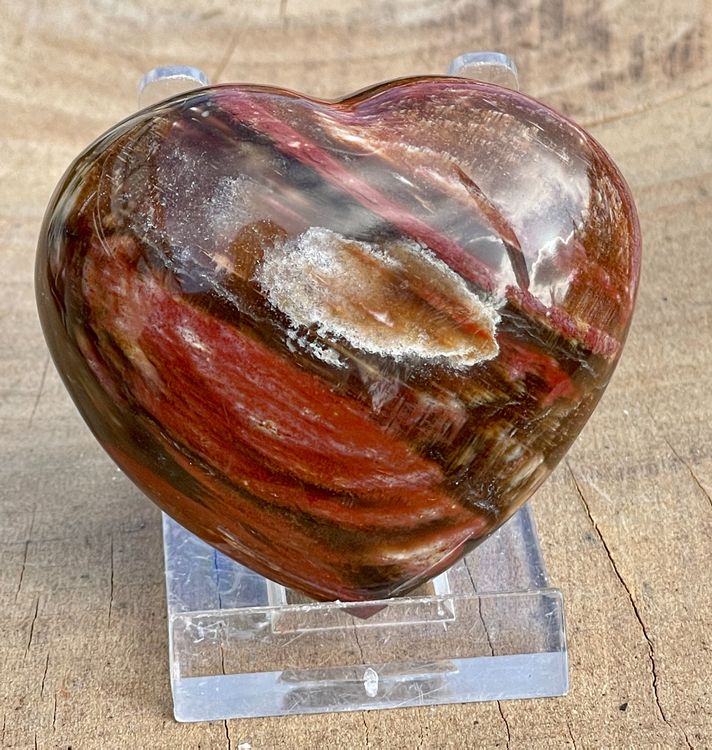 Budawi Fossil Holz Handschmeichler Herz - Bauchiges Edelsteinherz Aus Versteinertem Holz