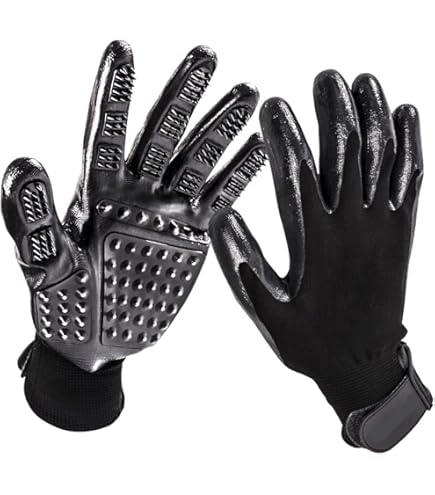 Endlich weniger Haare in der Wohnung! Diese 2 Fellpflege-Handschuhe machen Bürsten zum Vergnügen. Einfach überstreifen und dein Haustier streicheln - schon sammelst du lose Haare ein. Das doppelseitige Design mit verschiedenen Texturen entfernt selbst hartnäckige Unterwolle. Aus weichem, atmungsaktivem Material, das statische Aufladung verhindert. Und praktisch: Einfach unter fließendem Wasser abspülen und wiederverwenden! Funktioniert super bei Katzen, Hunden, Kaninchen... und sogar zum Reinigen von Sofas und Teppichen. So wird Pflegezeit zur Kuschelzeit!