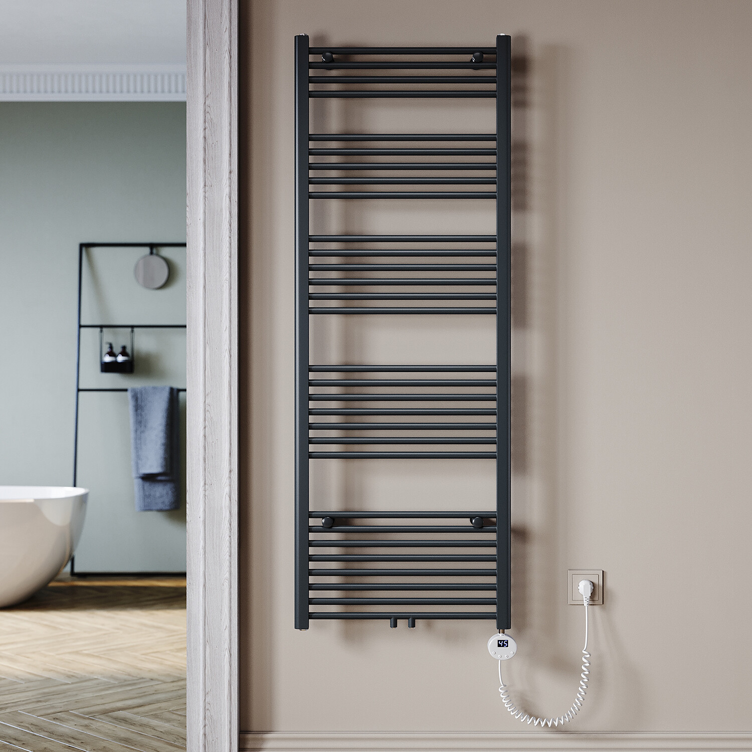 Endlich immer warme, trockene Handtücher im Bad! Dieser elektrische Handtuchheizkörper heizt mit 100 Watt und hält die Temperatur konstant zwischen 45-50°C - sicher und energiesparend. Aus robuster Aluminiumlegierung gefertigt, ist er leicht und langlebig. Mit 90x53cm Größe bietet er genug Platz für mehrere Handtücher. Du kannst ihn entweder an die Wand montieren oder frei im Raum aufstellen. Perfekt für kalte Tage oder um die Luftfeuchtigkeit im Bad zu reduzieren. Einfach installieren, einstecken und genießen!