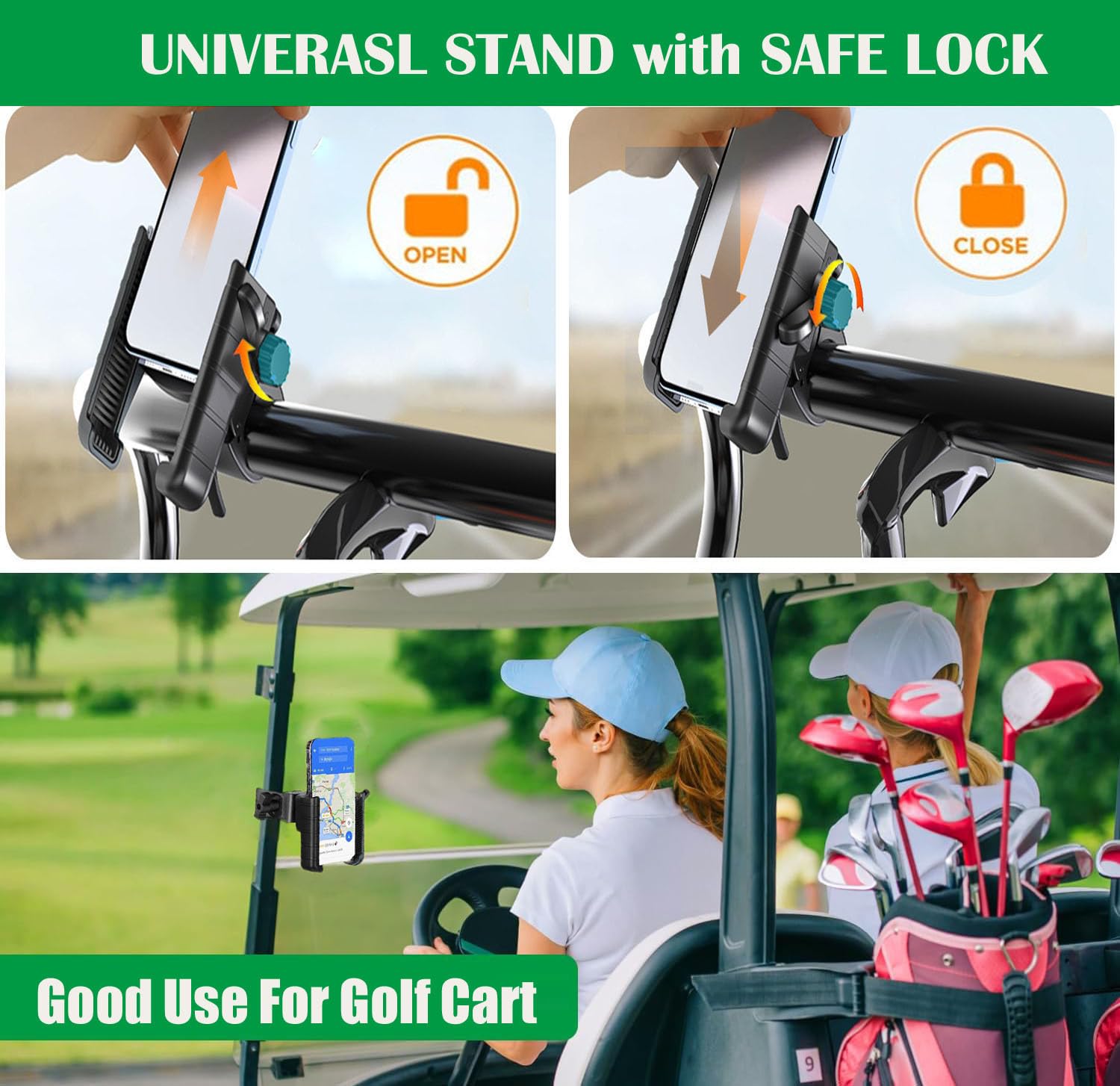 Perfekt für alle Golfer, die ihr Score tracking lieben! Diese Halterung macht dein Smartphone zum besten Golf-Buddy. Einfach am Golfwagen befestigen und schon siehst du deine GPS-Daten und Scorekarte perfekt. \\n\\nPasst an fast jeden Golfwagen - ob Clicgear, Sunmountain, Yamaha oder andere Marken. Für runde und eckige Rahmen von 1,5-4,1cm Durchmesser. Dein Phone (4,7-6,8 Zoll) wird durch rutschfeste Silikon-Pads sicher gehalten. \\n\\n360° drehbar - du findest immer den perfekten Winkel, ohne Blendung! Zwischen Hoch- und Querformat wechseln - super praktisch. Und das Beste: Werkzeugfreie Montage! Einfach mit Handdrehschrauben festmachen. \\n\\nNie wieder das Phone in der Tasche suchen - immer griffbereit für deine Golf-Apps. Macht jede Runde noch entspannter!