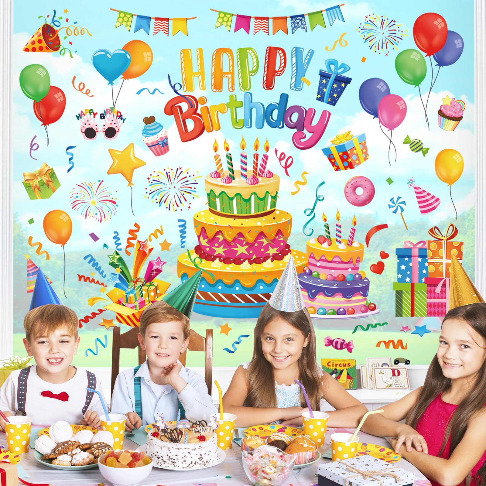 Decalmile Fensteraufkleber Happy Birthday - 8 Bögen Geburtstagsdeko Für Fenster