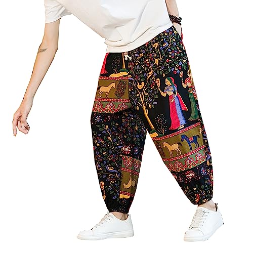 Haremshose Herren Leinen - Japanische Weite Sommerhose Mit Open Leg