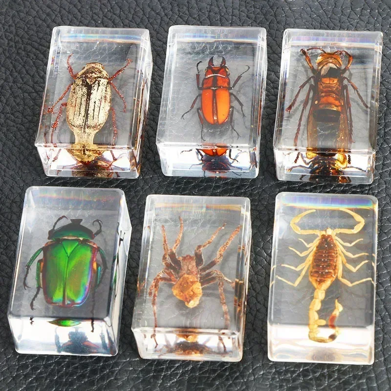 6er Set Insekten In Harz - Käfer Präparate Für Deko & Lernen