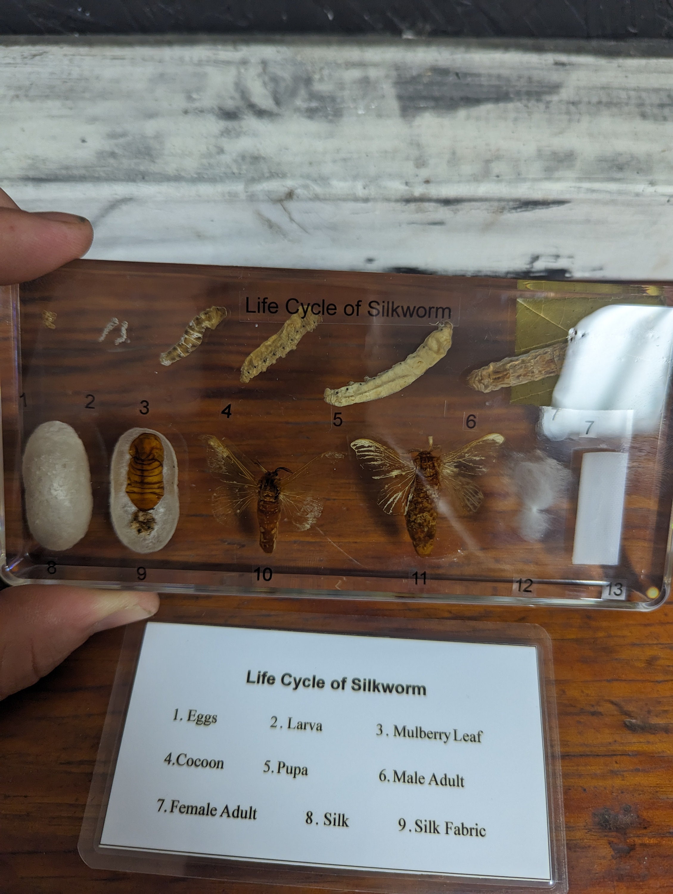 Life Cycle Seidenraupe - Harz Präparat Zoologie Unterricht 164x78x20mm