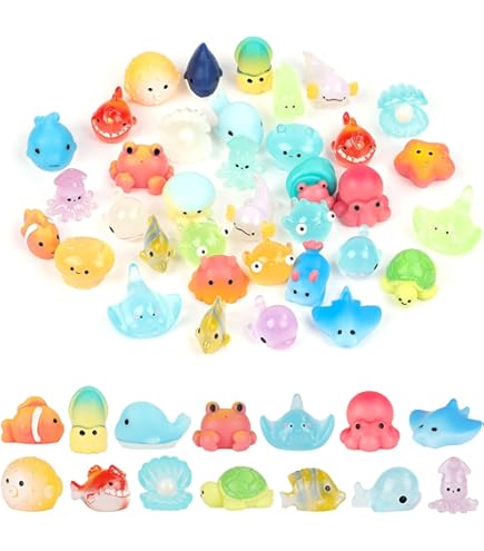 So niedlich! Diese 100 leuchtenden Mini-Tiere aus Harz bringen Magie in deine Deko. Tagsüber bunt und fröhlich, nachts leuchten sie in geheimnisvollem Licht - einfach vorher ans Licht halten zum Aufladen. Perfekt für Miniaturlandschaften, Bonsai-Bäume, Aquarien, Terrarien oder als Bastelmaterial für Kinder. Die verschiedenen Tierformen wie Hasen, Enten und Fische regen die Fantasie an. Aus ungiftigem, geruchsneutralem Material mit glatten Kanten, damit sich niemand verletzt. Ein riesiges Set zum kleinen Preis - ideal für kreative Projekte, Kindergeburtstage oder die verschönerung deiner Wohnung!