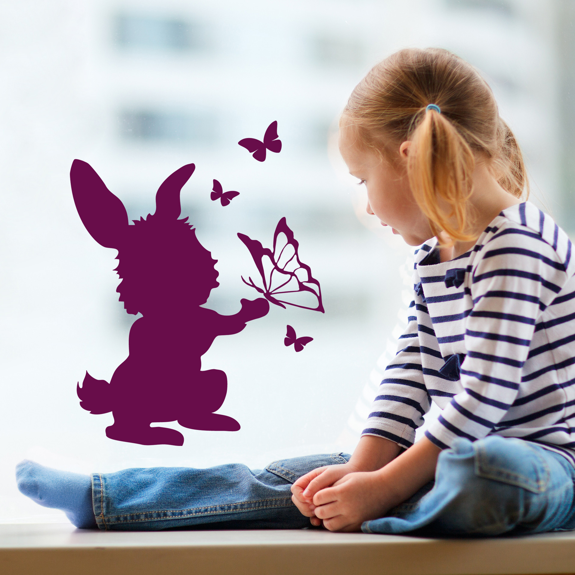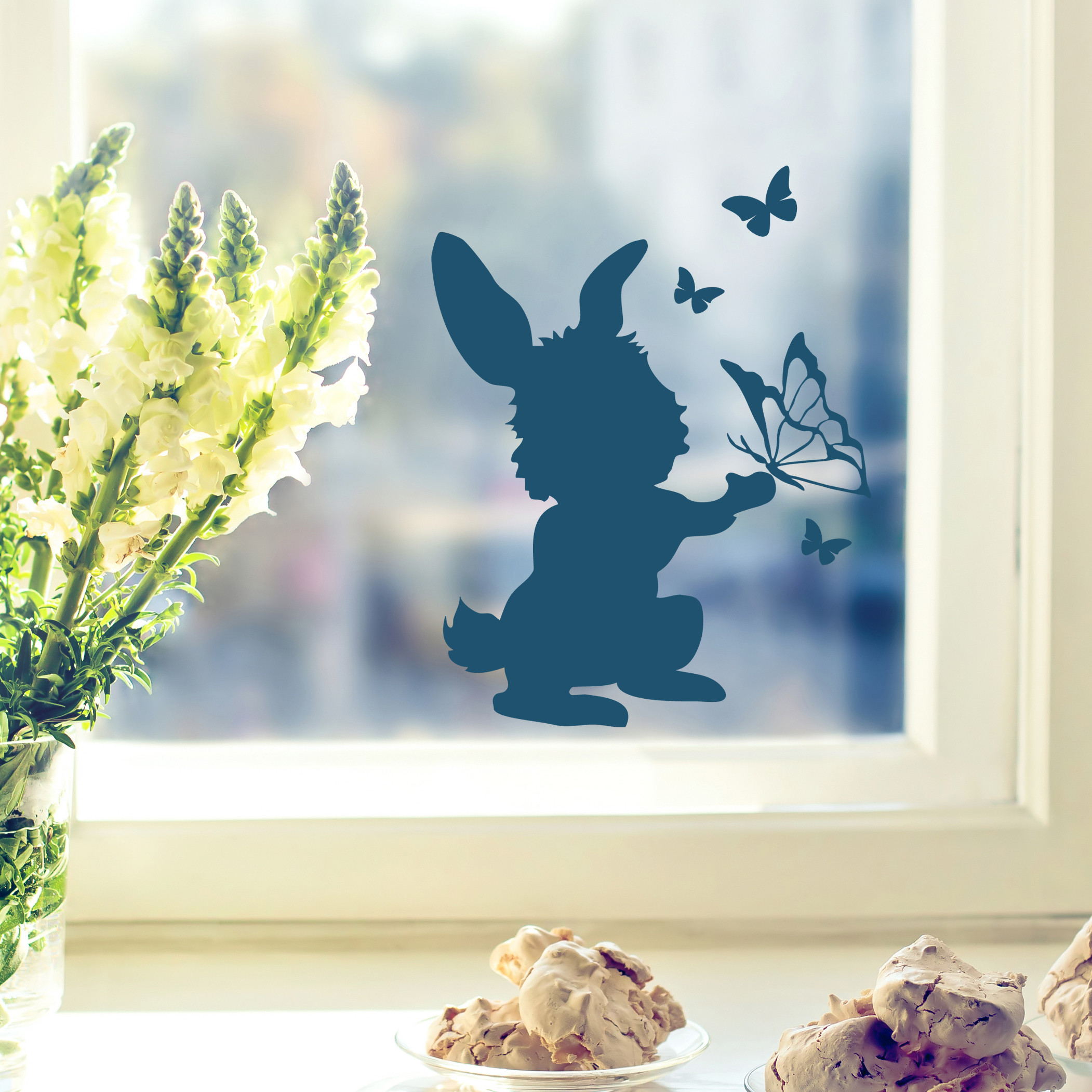 Wandtattoo Hasen Mit Schmetterlingen - Dekorativer Wandschmuck Für Zuhause