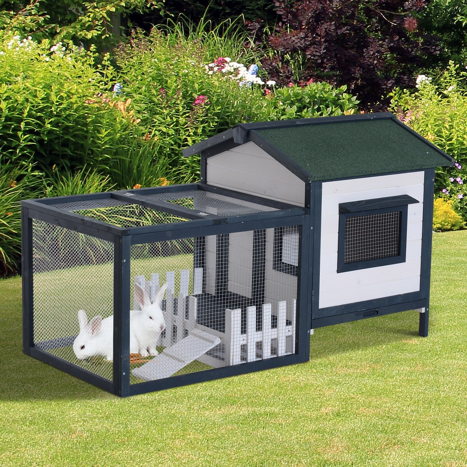 PawHut Hasenstall 2 Ebenen 122x95cm - Winterfester Kaninchenkäfig Outdoor