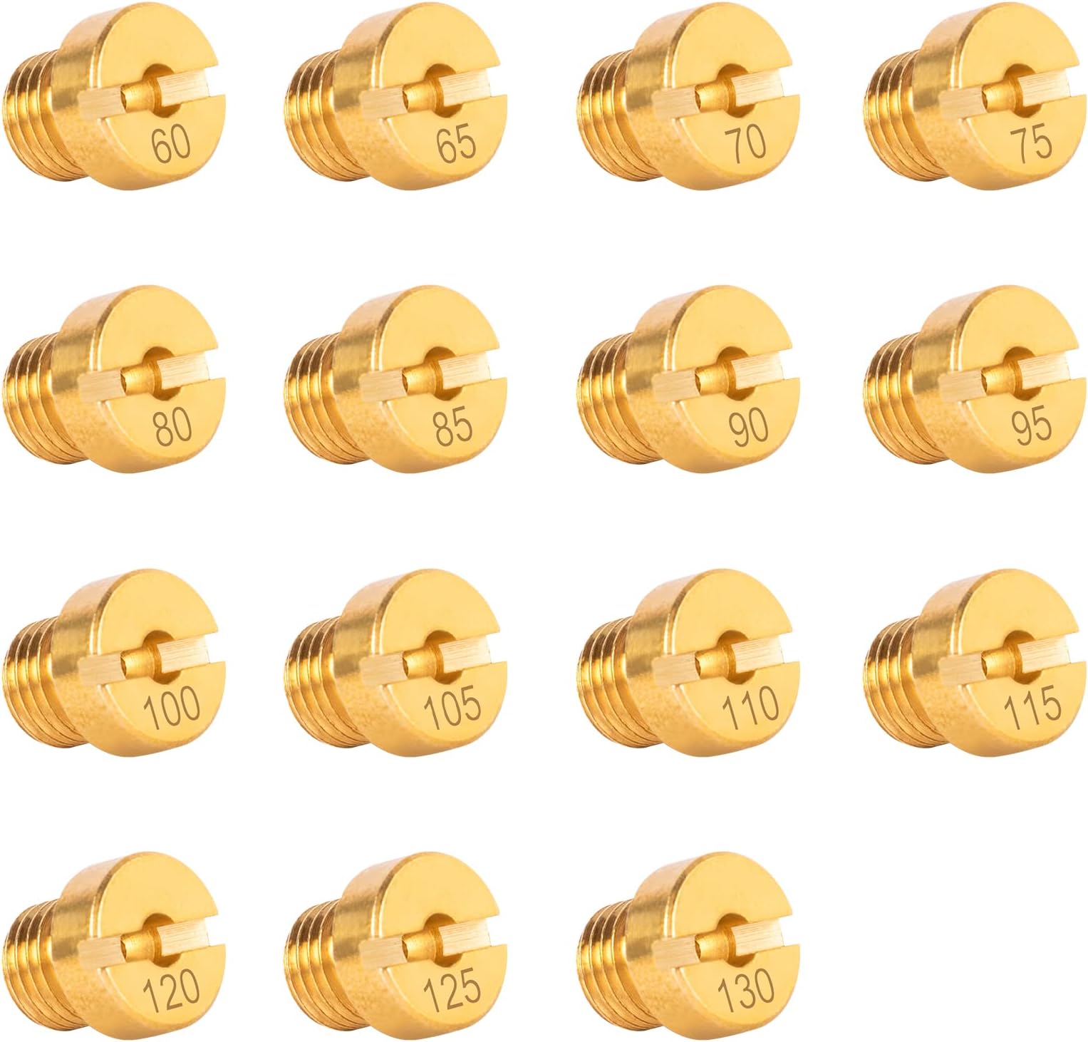Mikuni-Vergaser-Besitzer, dies ist euer Set! 15 Hauptdüsen in allen gängigen Größen von #88 bis #150 - damit findest du garantiert die perfekte Einstellung für deine Maschine.\n\nSuper kompatibel mit Mikuni VM Vergasern: VM22, VM24, VM26, VM30 - die passen wie angegossen. Perfekt für 125cc bis 250cc Motorräder und Dirt Bikes.\n\nDie Installation ist kein Hexenwerk: Gewindelänge 5mm, M5 x 75mm Gewinde - das geht ratzfach und du kannst sofort loslegen mit dem Tuning.\n\nAus hochwertigem Material gefertigt, halten die Düsen was aus. Egal ob du mehr Leistung willst, den Verbrauch optimieren willst oder einfach nur die beste Abstimmung für deine Maschine suchst - hier bist du richtig.\n\nVon #88 für die feine Einstellung bis #150 für mehr Power - mit diesem Set hast du alle Optionen. Einfach die alte Düse raus, neue rein und testen. Viel Spaß beim Feintuning!