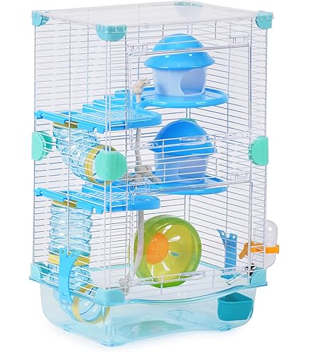 Mit zwei Etagen bietet der Käfig viel Platz zum Erkunden und Spielen. Oben das gemütliche Häuschen zum Schlafen und Ausruhen, unten genug Raum für Aktivitäten. Die Treppe verbindet beide Ebenen - dein Hamster wird sie lieben!