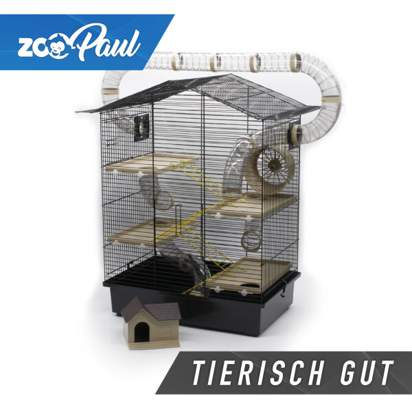 All-in-One: Käfig, Haus, Laufrad und Leiter in einem Set. Einfach aufbauen, einrichten und dein neuer Mitbewohner kann einziehen! Perfekt für Kinder und Erwachsene gleichermaßen.