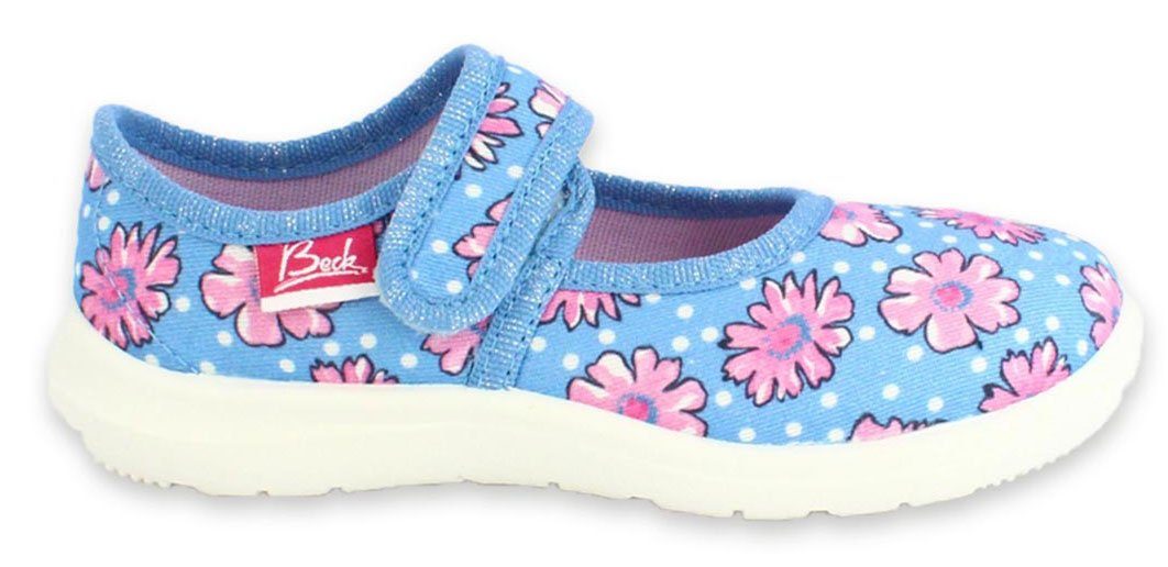 Süße Hausschuhe für kleine Prinzessinnen! Die Beck Harmonie Hausschuhe aus weicher Baumwolle mit niedlichem Schmetterlingsdruck. Mit flexiblem Kautschuk-Sohle und praktischem Klettverschluss - passt auch schmalen Füßen perfekt. Nicht nur für zu Hause, sondern auch für Kindergarten, Schule oder zum Spielen. Fußgerecht geformt und qualitativ hochwertig verarbeitet. Deine Tochter wird sie lieben! In vielen Größen erhältlich - der perfekte Allrounder für aktive Mädchen.