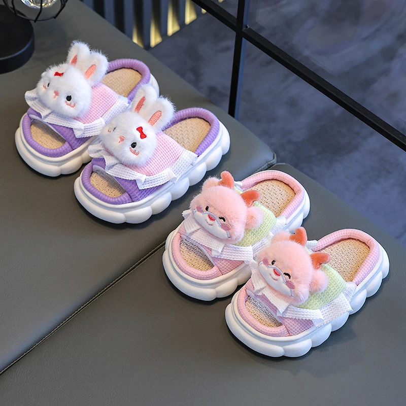 Happy Cherry Kinder Hausschuhe Mit Hasen-Muster - Rutschfeste Leinen Hausschuhe Größe 24-33