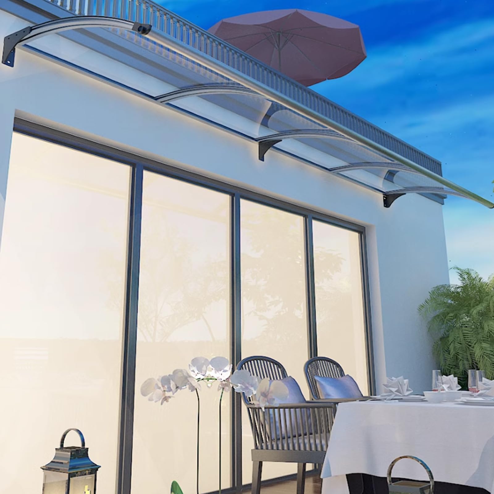 Vordach Für Haustür 55x200cm - Transparentes Polycarbonat 2.5mm