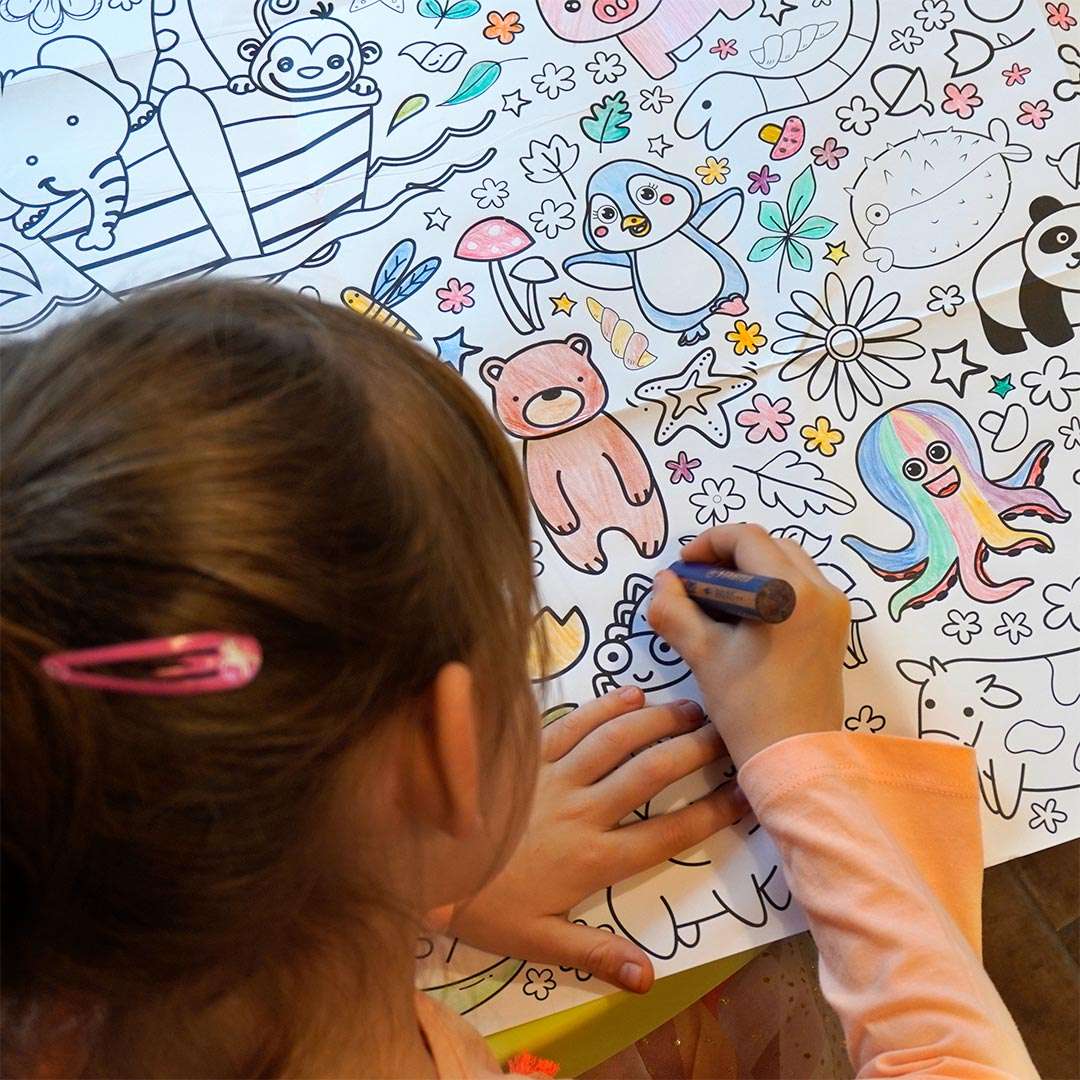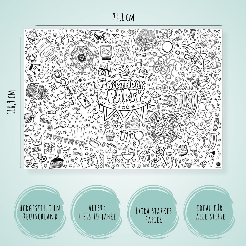 Aloha Kreativität! Diese riesige Hawaii-Tischdecke (118x84cm) bringt Sommerstimmung ins Kinderzimmer. Mit 24 Aquarellstiften können die Kleinen tropische Motive wie Tiki-Masken, Ananas, Flamingos und Palmen bunt ausmalen. Perfekt für Geburtstagsfeiern, Hawaii-Partys oder regnerische Nachmittage. Fördert Kreativität, Feinmotorik und Farbverständnis. Aus festem Papier das nicht leicht reißt. Ein Riesenspaß für Kinder von 3-10 Jahren! Einfach ausbreiten, Stifte raus und los geht die Mal-Party - fertig ist die bunte Hawaii-Deko!