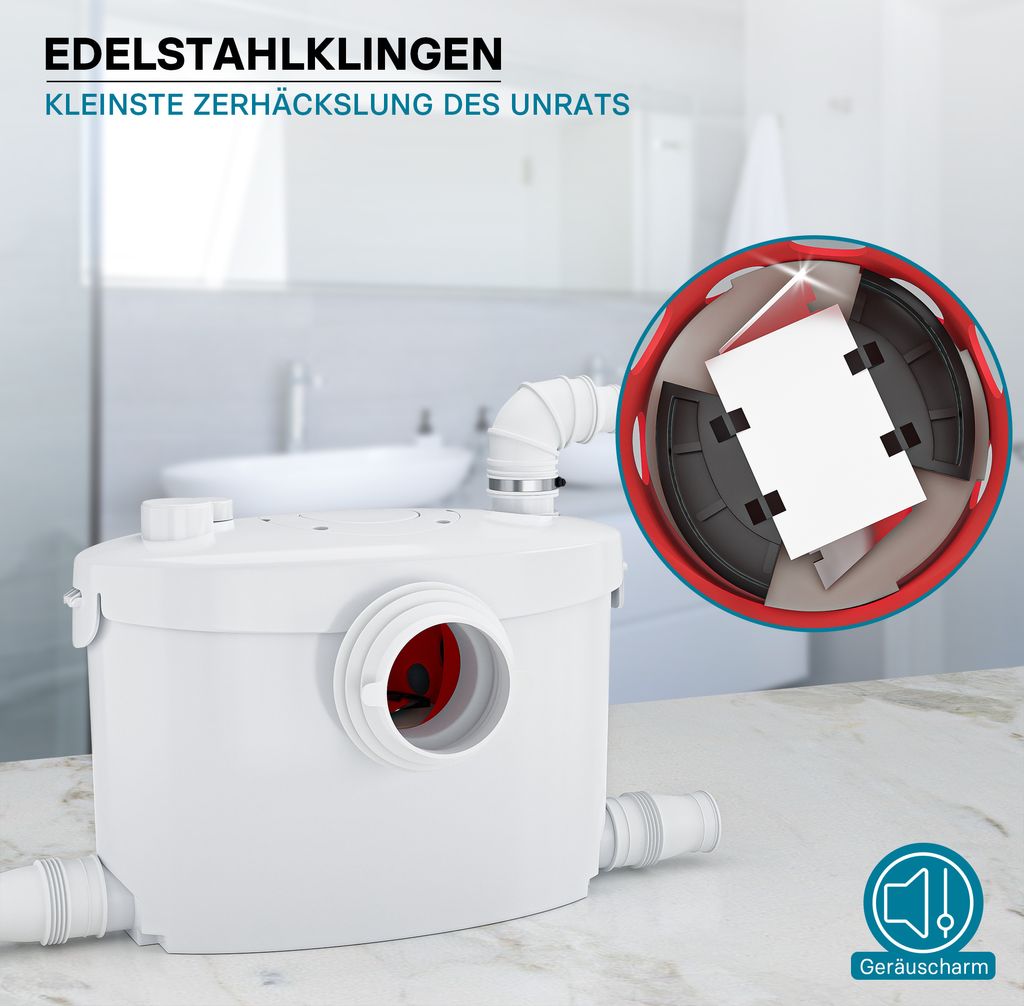 TEOV Hebeanlage 400W Mit Häcksler - Abwasserpumpe Für WC, Dusche & Waschbecken