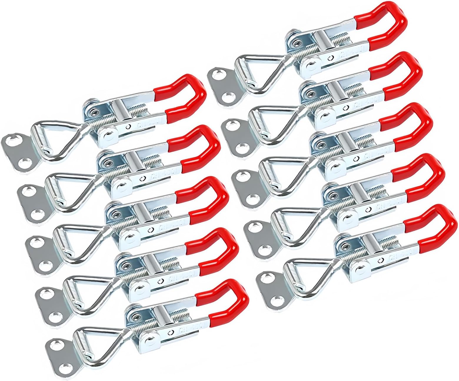 Dieses 4-teilige Spannverschluss Set ist super praktisch für alle, die Türen, Schubladen oder Kisten sichern wollen! Jeder Verschluss ist aus robustem Eisen mit gummiertem Griff gefertigt - das gibt sicheren Halt und verhindert das Abrutschen der Hand. Mit den Maßen 10x1,7 cm und einem Schließbereich von 2,4 cm Durchmesser passen die Verschlüsse perfekt zu den meisten Möbeln. Die Montage ist denkbar einfach: Einfach mit den mitgelieferten Schrauben befestigen und schon bist du fertig. Jeder Verschluss hält bis zu 100kg - also richtig stabil! Perfekt für Schränke, Schubladen, Koffer, Werkzeugkisten oder auch für Türen im Haus, Büro oder der Werkstatt. Das silberfarbene Design sieht nicht nur gut aus, sondern ist auch super funktional. Einfach ein must-have für alle, die Ordnung und Sicherheit lieben. Mit 4 Stück im Set hast du genug für mehrere Projekte!
