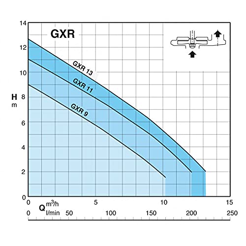 Die Calpeda GXRM13 ist eine echte Arbeitsspinne wenn's ums Entwässern geht! Mit 0,45 kW Leistung und 220V Einphasen-Stromanschluss schafft diese Pumpe bis zu 13,2 m³/h - das ist schon echt beachtlich. \\n\\nBesonders praktisch: Sie kann schon ab 15 mm Wasserhöhe eingesetzt werden und schafft eine maximale Förderhöhe von 5 Metern. Das Pumpengehäuse und die Turbine sind aus robustem Edelstahl 304, was für lange Haltbarkeit sorgt. \\n\\nDie Pumpe läuft mit 2900 U/min und hat IPX8 Schutz - also absolut dicht. Der integrierte thermische Schutz verhindert Schäden bei unbeabsichtigtem Start. \\n\\nIm Lieferumfang sind schon Kondensator, einstellbarer Schwimmer und das Stromkabel dabei. Perfekt also für den sofortigen Einsatz! \\n\\nOb im Garten, Keller oder bei leichten Überschwemmungen - diese Pumpe macht ihren Job zuverlässig und effizient. Maximale Wassertemperatur: 50°C. Ein echter Allrounder für alle, die eine solide und langlebige Pumpe brauchen!