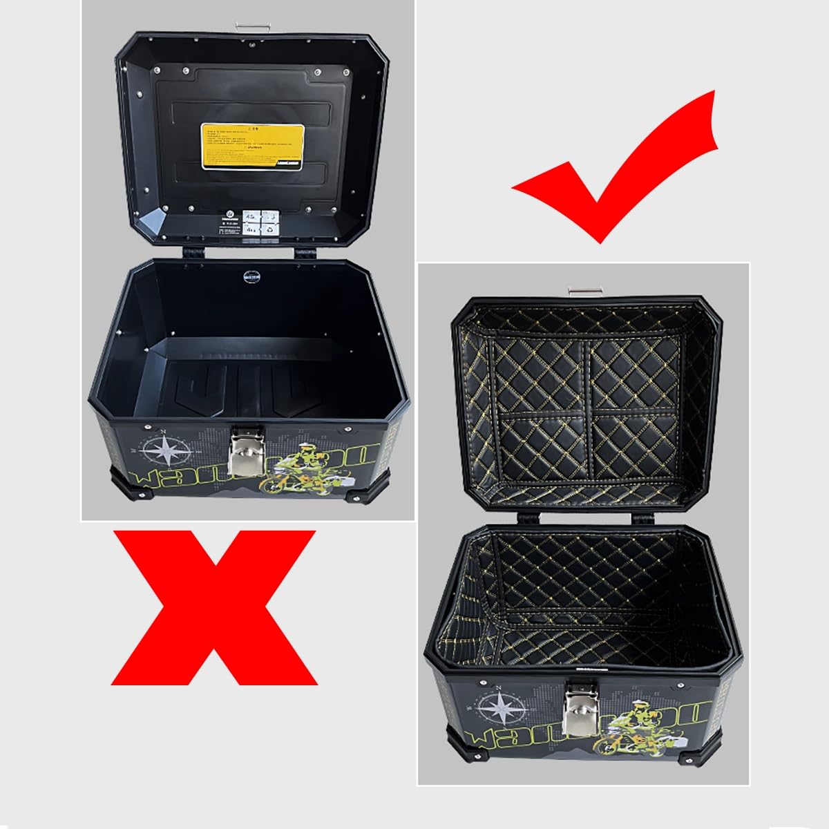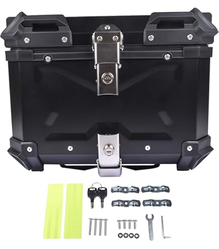 Mehr Stauraum für dein Motorrad! Dieser praktische 45L Topcase aus robustem ABS-Material bietet reichlich Platz für zwei Helme oder dein Reisegepäck. Wasserdicht und diebstahlsicher mit Edelstahl-Schloss schützt deine Wertsachen zuverlässig. Die Reflektor-Sticker sorgen für bessere Sichtbarkeit bei Nacht und Regen. Mit den Maßen 41,5 x 34,5 x 32cm passt die Box auf die meisten Motorräder, Roller und Leichträder. Einfache Montage - deine Touren werden organisiert und sicher! Nie wieder nasse Klamotten oder gestohlene Helme. Dein praktischer Begleiter für alle Fahrten!