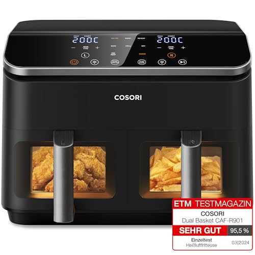Kochen wie ein Profi mit zwei getrennten Frittierkörben! Diese Heißluftfritteuse von Russell Hobbs hat zwei 4,25-Liter-Kammern - da passen Pommes und Hähnchen gleichzeitig rein, ohne dass sich die Aromen vermischen. Die Sync-Funktion sorgt dafür, dass alles gleichzeitig fertig wird, selbst bei unterschiedlichen Garzeiten. Mit 8 Programmen (Pommes, Hähnchen, Steak, Backen...) und Temperatur von 30-200°C wird jedes Gericht perfekt. Die Körbe sind spülmaschinengeeignet - kein langes Schrubben nach dem Kochen. Der Add-Food-Reminder sagt dir, wann du weitere Zutaten hinzufügen musst, und der Shake-Reminder erinnert ans Wenden. Gesund kochen mit wenig oder keinem Öl - so macht Kochen Spaß!