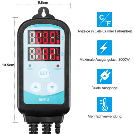 Dieser Temperaturregler ist ein echter Alleskönner! Ob für deinen Kühlschrank, Gefrierschrank, Gärbehälter oder Gewächshaus - er hält die Temperatur genau da, wo du sie haben willst. Das große LCD-Display zeigt alles super an, und der wasserdichte Sensor misst zuverlässig. Du kannst sowohl heizen als auch kühlen einstellen, und der Kompressorschutz verhindert Schäden. Mit 1100W bei 110V packt er die meisten Haushaltsgeräte. Einfach einstecken, einstellen und los geht's! Perfekt für Hobby-Brauer, Gärtner oder wenn du einfach genau kontrollieren willst, wie warm oder kalt es ist.