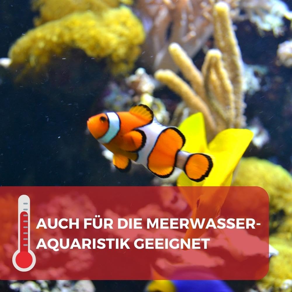 Hey Aquarianer! Deine Fische frieren? Mit diesem 25W Heizstab wird's im Aquarium richtig gemütlich! Perfekt für Becken zwischen 20 und 40 Liter, mit einstellbarer Temperatur von 20-34°C. Die ON-Anzeige zeigt dir sofort, ob er heizt und der Thermostat hält die Temperatur super genau (±2°C). Aus 2mm dickem Quarzglas und doppelt wasserdicht (IP68) - absolut sicher für Süß- und Meerwasser! Mit den beiden Saugnäpfen befestigst du ihn easy in jeder Position. Einfach komplett eintauchen, Temperatur einstellen und deine Fische genießen das angenehme Klima. Besonders praktisch: Wenn du Wasser wechselst, einfach 10 Minuten vorher Strom aus - so einfach geht's! Deine Fische werden's dir danken!