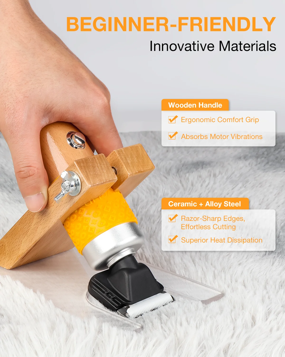 Dein eigenes Ticket in die Welt des Tuftings! Der Helangel Teppichschneider mit 200W Leistung ist einfach perfekt für alle, die ihre eigenen Teppiche und Textilkunstwerke kreieren wollen. Mit 6 verstellbaren Geschwindigkeiten findest du für jedes Projekt die ideale Einstellung - egal ob Anfänger oder Profi. Der Holzgriff aus Birnbaumholz liegt super angenehm in der Hand und absorbiert Vibrationen super. Die scharfe Titanlegierungs-Klinge in Kombination mit der beweglichen Keramikklinge schneidet mühelos durch alle Materialien. Im Lieferumfang sind 2 Führungskämme mit verschiedenen Schnitttiefen (3mm, 6mm, 9mm, 12mm) enthalten - so erzielst du immer perfekte Ergebnisse. Das lange Kabel gibt dir genug Bewegungsfreiheit. Wichtig: Vergiss nicht, vor dem ersten Gebrauch Schmieröl hinzuzufügen! So wird dein Tufting-Abenteuer zum vollen Erfolg!