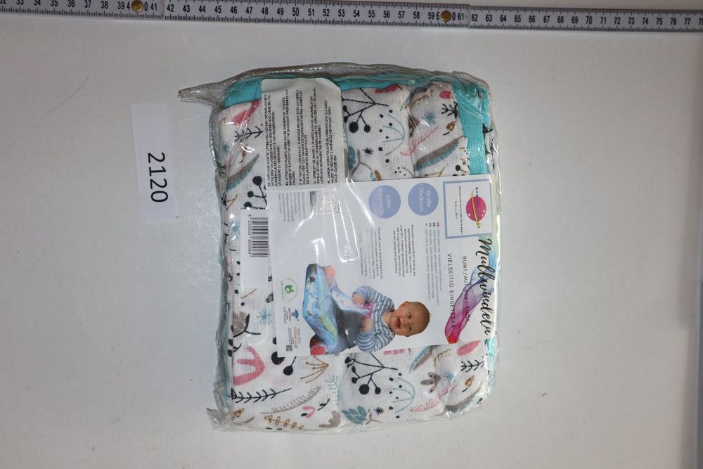 Alles dabei was man braucht: Die Tasche selbst (30,5x21x5cm), eine Stoffwindel mit Klettverschluss und 3 Mulltücher. Perfekt für unterwegs!