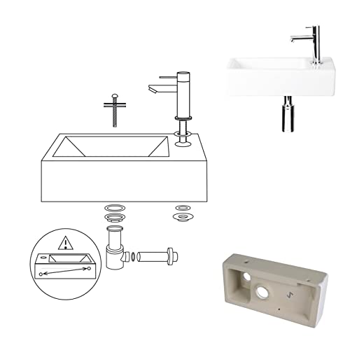 Differnz Helios Handwaschbecken Set - Kompaktes Keramikbecken Mit Armatur 37,5x18cm