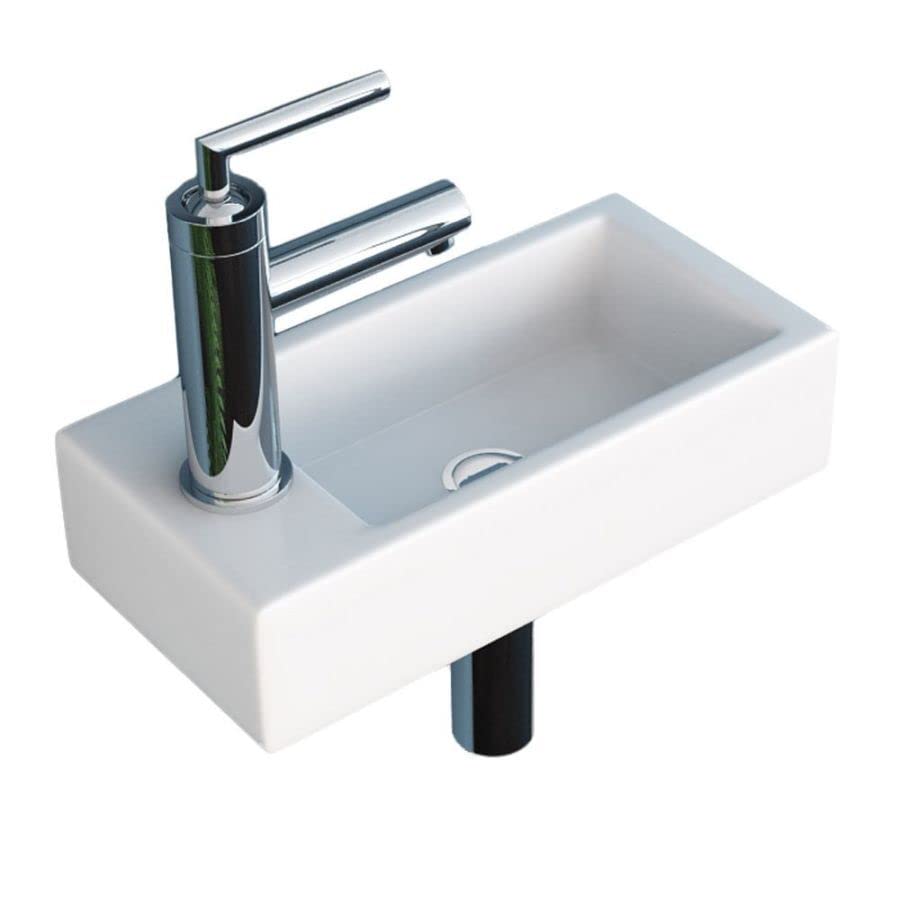Perfekt für kleine Gäste-WCs! Dieses kompakte Helios Handwaschbecken von Differnz macht auch aus der kleinsten Toilette einen vollwertigen Waschraum. Das schmale Keramikbecken (37,5x18x9,5cm) findet fast überall Platz. Im Komplett-Set ist alles dabei: Waschbecken, Kaltwasserhahn (links), Siphon, Abfluss und Montagematerial - einfach aufhängen und anschließen! Die kratzfeste Keramik ist super pflegeleicht, und der wassersparende Wasserhahn schont die Umwelt. Das zeitlose Design in Weiß passt in jedes Badezimmer und verleiht auch einfachen Räumen einen luxuriösen Touch. Einfache Montage dank beiliegender Anleitung. Endlich Händewaschen auf der Gästetoilette - ohne großen Platzverbrauch!