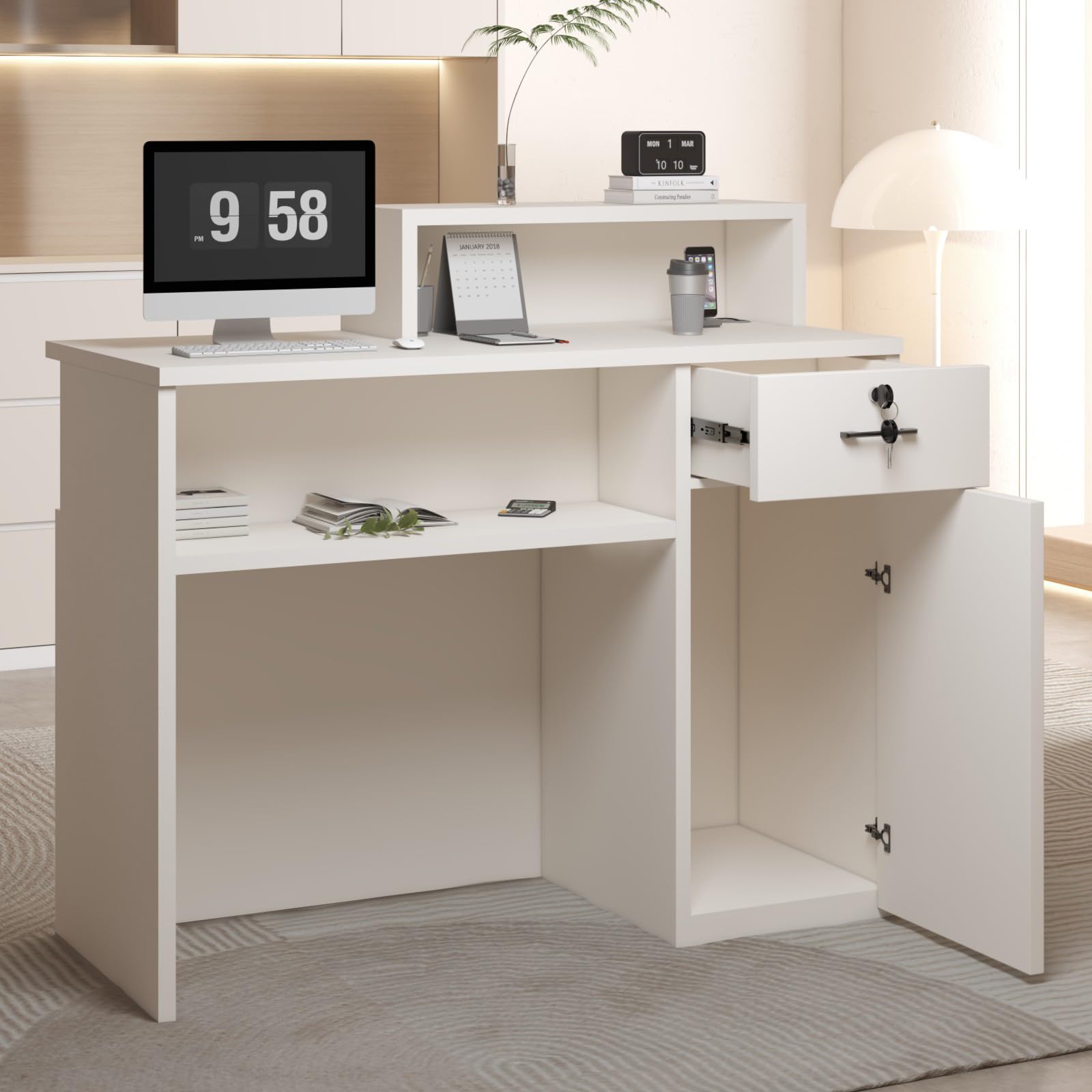 Heliosrider Empfangstisch Weiß - Rezeptionstheke Mit Schloss & Schublade