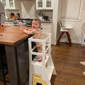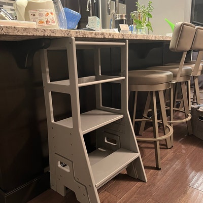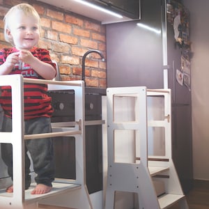 Mama, Papa - dieser Lernturm ist der absolute Hit für eure Kleinen! Ab 1 Jahr können eure Kinder damit sicher in der Küche oder im Bad mithelfen und alles aus Erwachsenenhöhe beobachten. Der Kitchen Kids Helper ist 90cm hoch und wächst mit: Die Plattform lässt sich in 3 Stufen (20, 30 und 40cm) verstellen - so passt er jahrelang! Aus stabilem Holz gefertigt und trägt bis zu 50kg, also auch für Geschwister super geeignet. Mit Rausfallschutz und stabiler Konstruktion ist euer Kind absolut sicher. Eure Kleinen können so beim Kochen zuschauen, Gemüse waschen oder sich einfach nur die Zähne putzen - immer auf Augenhöhe mit euch! Das fördert die Selbstständigkeit und macht richtig Spaß. Maße: 90x40x50cm, also platzsparend aber trotzdem robust. Einfach aufzubauen und sieht in jedem Zuhause gut aus. Hergestellt in Polen aus hochwertigem MDF-Holz. Euer Kind wird diesen Turm lieben - versprochen!