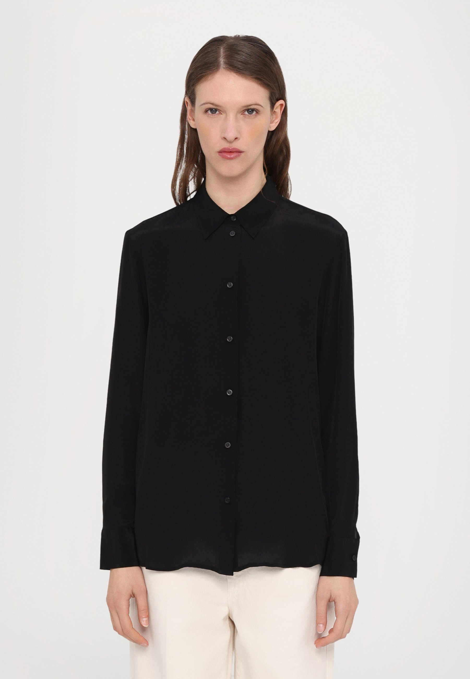 Damen Langarm Hemd Georgette - Lockere Passform Mit Taschen