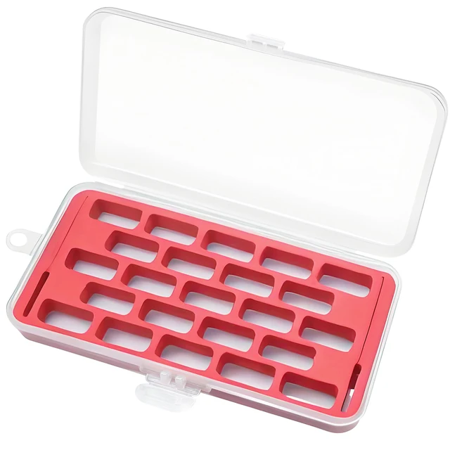 Hey du Näh-Begeisterte! Diese Aufbewahrungsbox für Spulen ist ja mal genau das, was du brauchst, um Ordnung in dein Nähzeug zu bringen. Die Box bietet Platz für ganze 28 Spulen - egal ob aus Kunststoff oder Metall, alles findet hier seinen festen Platz. Der weiche Schaumstoff innen drin verhindert, dass die Spulen hin und her rutschen und sich die Fäden verwirren. Das ist doch viel besser, als wenn alles lose in irgendeiner Schublade rumfliegt, oder? Die Box ist absolut auslaufsicher - also wenn mal was daneben geht, bleibt alles schön in der Box. Die starken Frontriegel sorgen dafür, dass nichts ungewollt aufgeht, selbst wenn du die Box mal mitnimmst. Mit den Maßen 19 x 9,5 x 3 cm ist sie super handlich und passt in jede Nähkiste oder -tasche. Ohne Inhalt geliefert, also kannst du sie genau mit den Spulen füllen, die du am meisten brauchst. Perfekt für Näh-Anfängerinnen und Profis gleichermaßen! So machst du Schluss mit dem Chaos und findest immer sofort die richtige Farbe. Einfach reinlegen, zuklappen und fertig - mehr Komfort beim Nähen geht nicht!